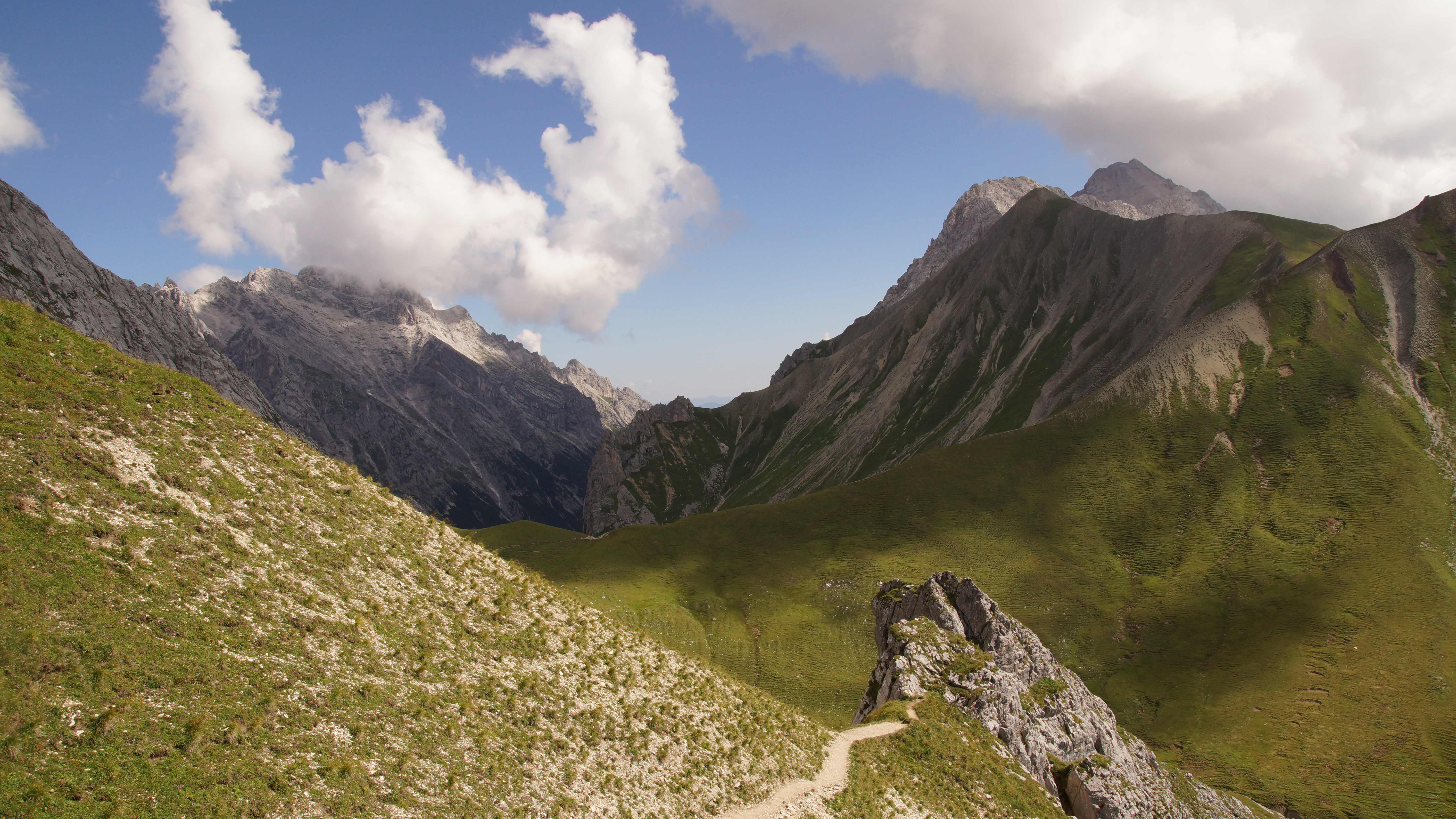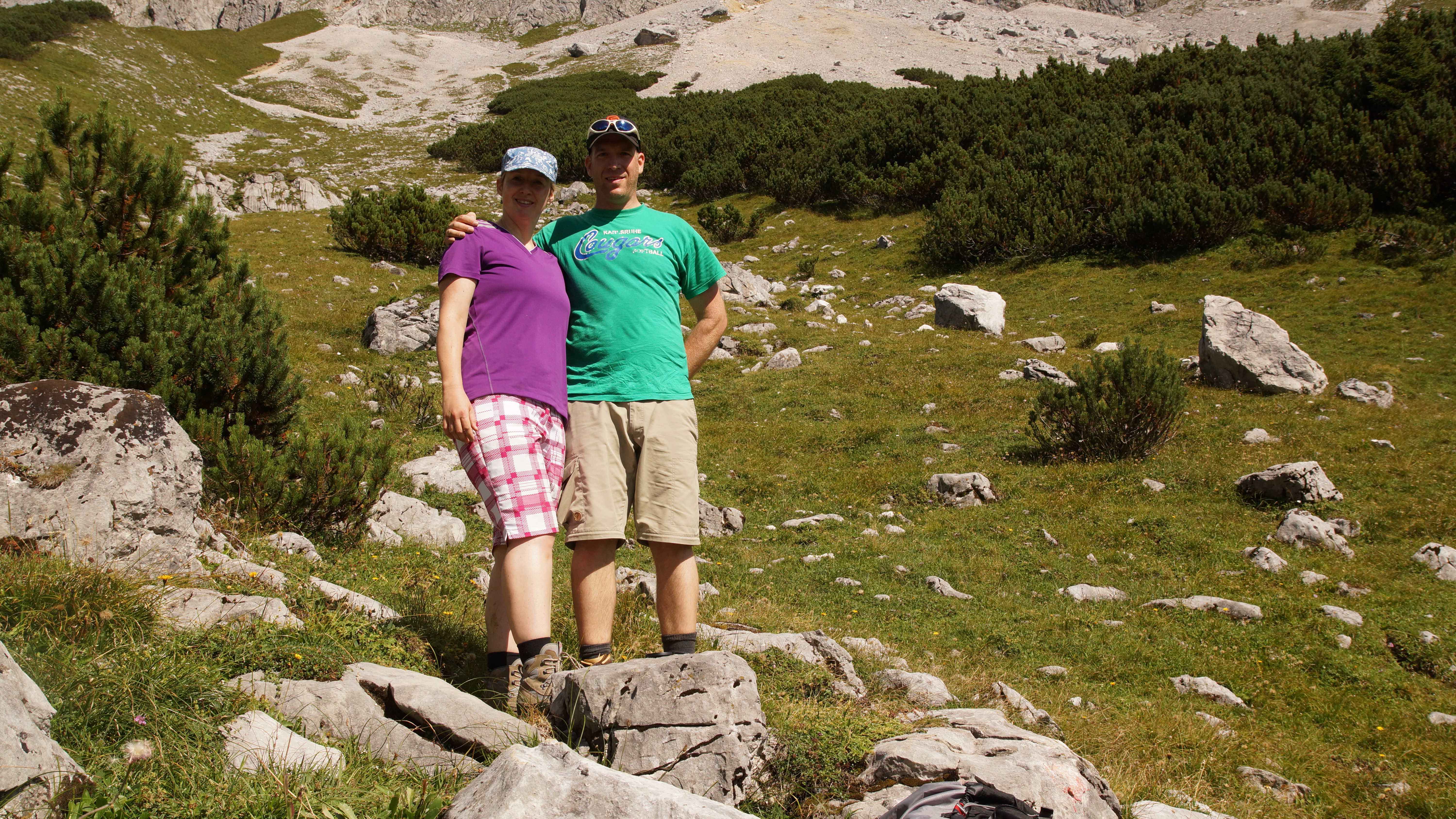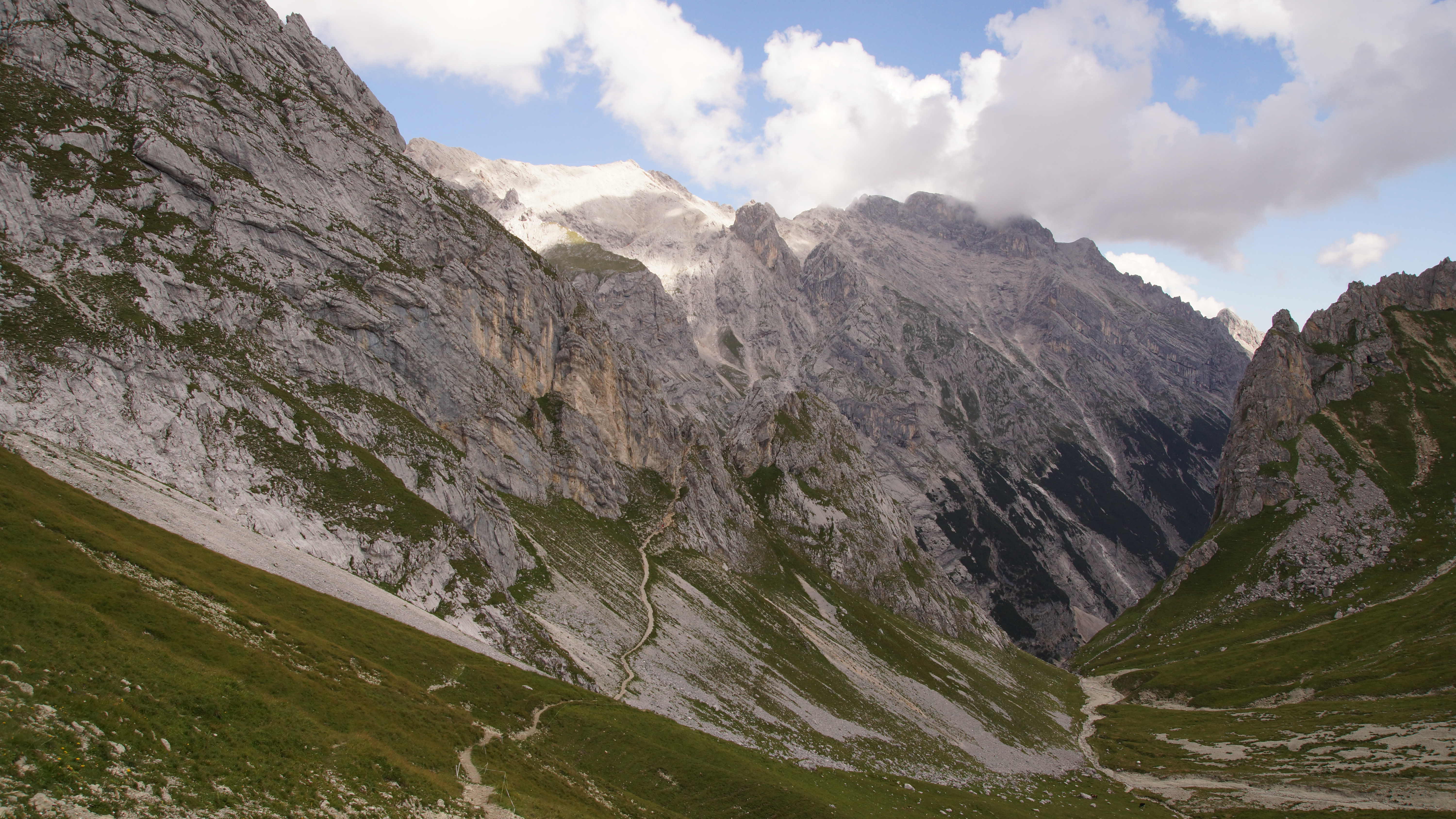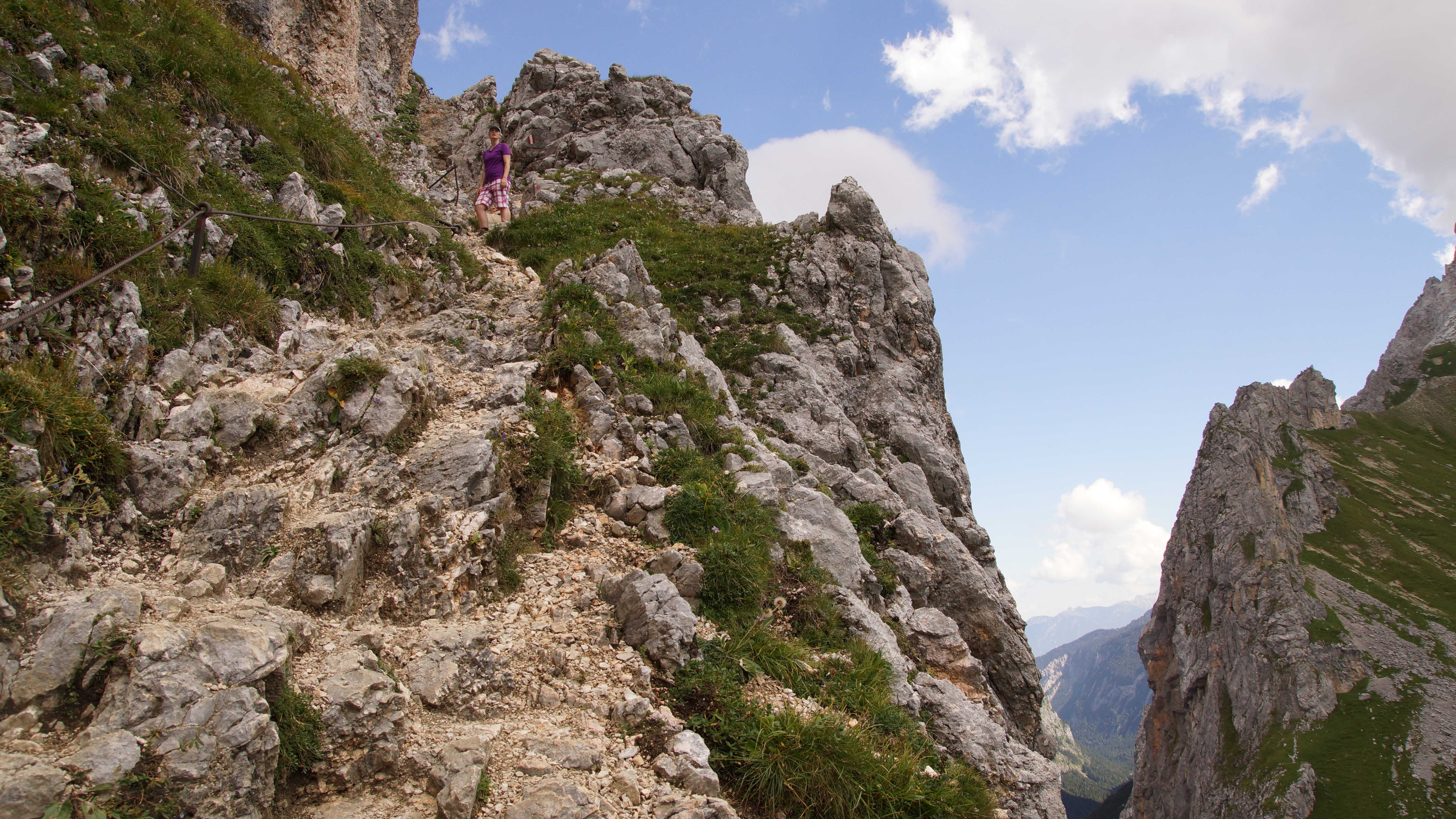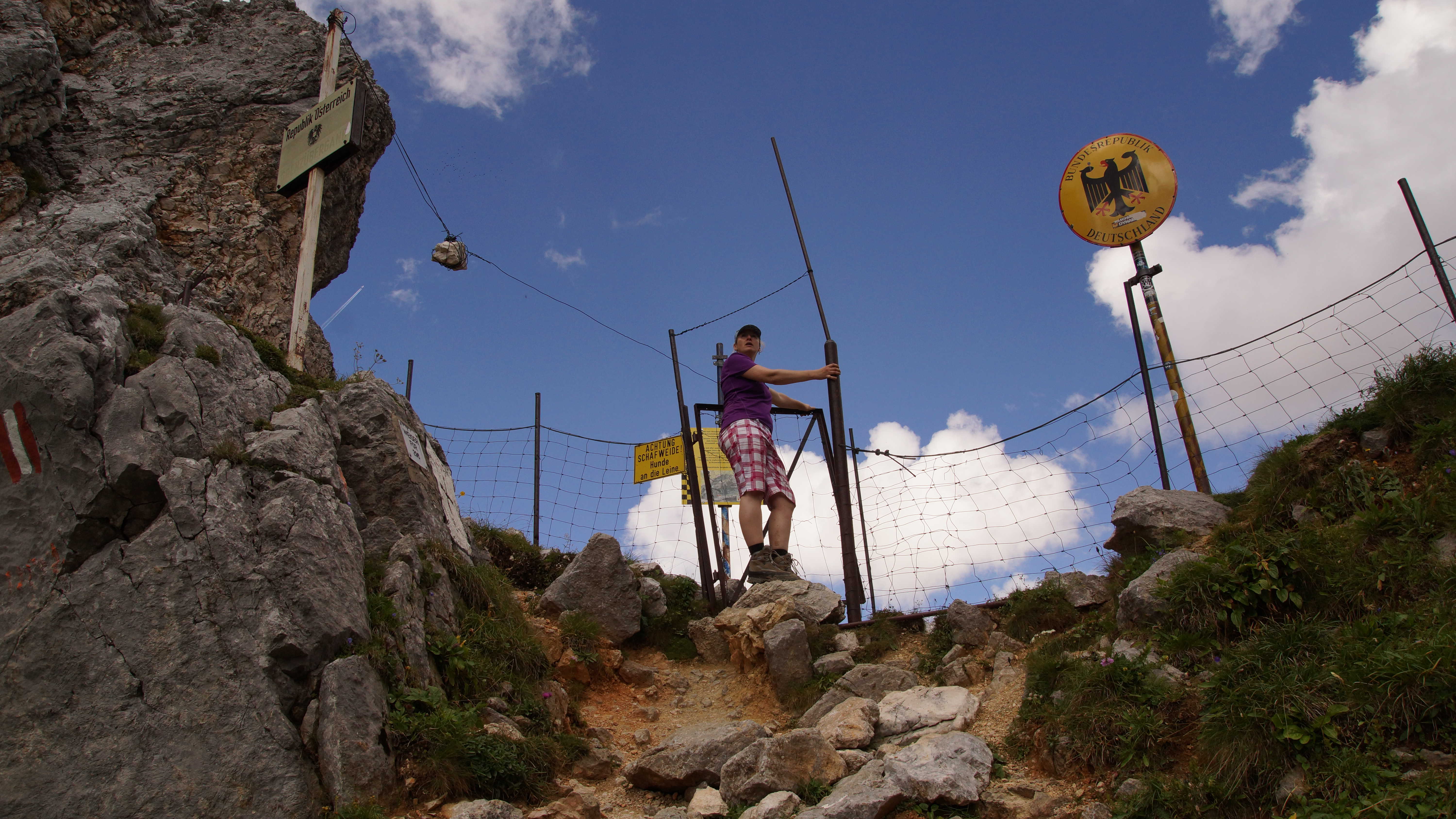 Nach einer Abzweigung zum „Steinernen Hüttl“ ging es erst nochmal leicht bergab, dann aber auch wieder steil bergauf. Und dann wartete der Steig zum „Gatterl“ auf uns. „Gatterl“ heißt die Scharte im deutsch-österreichischen Grenzkamm.