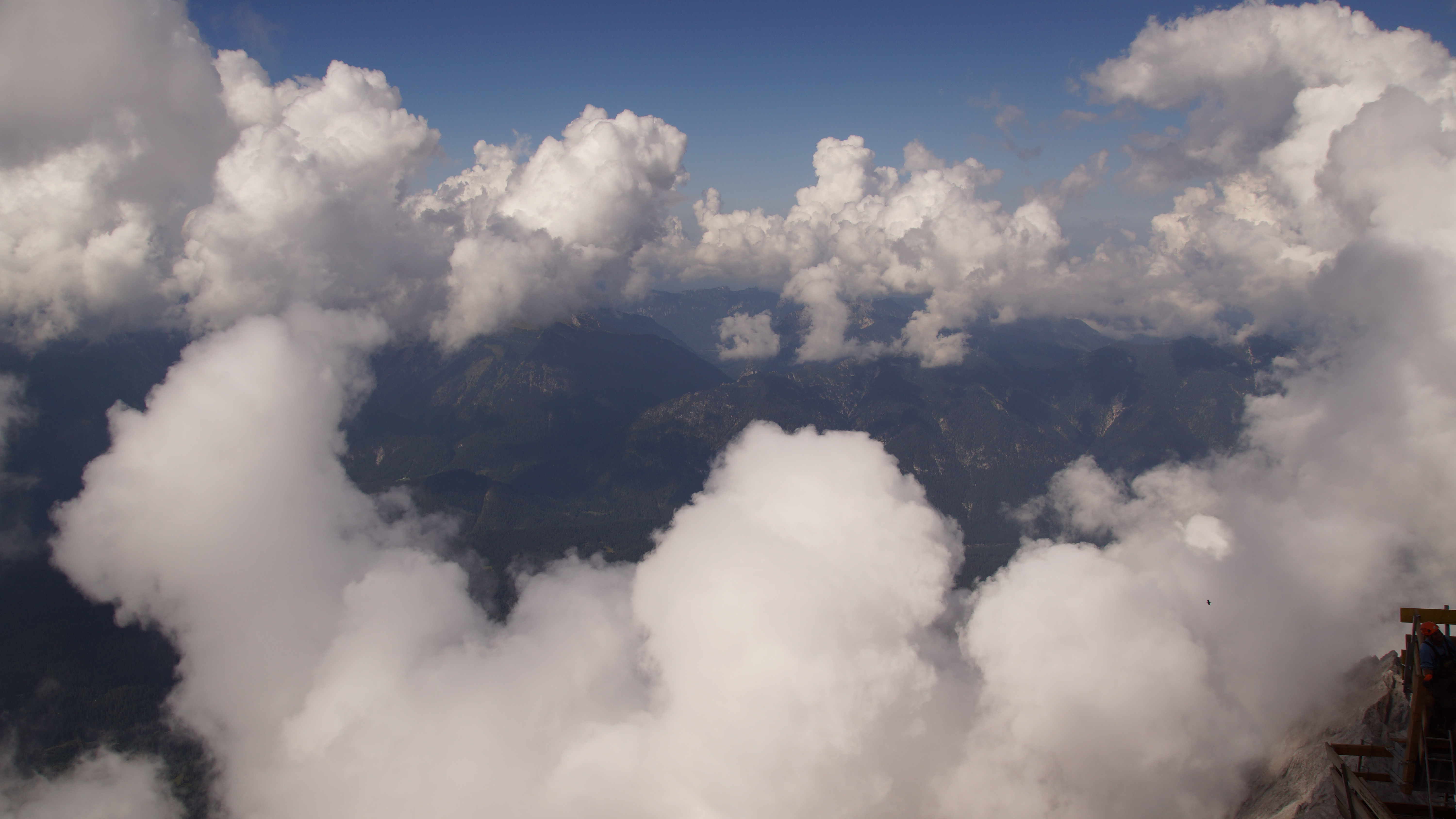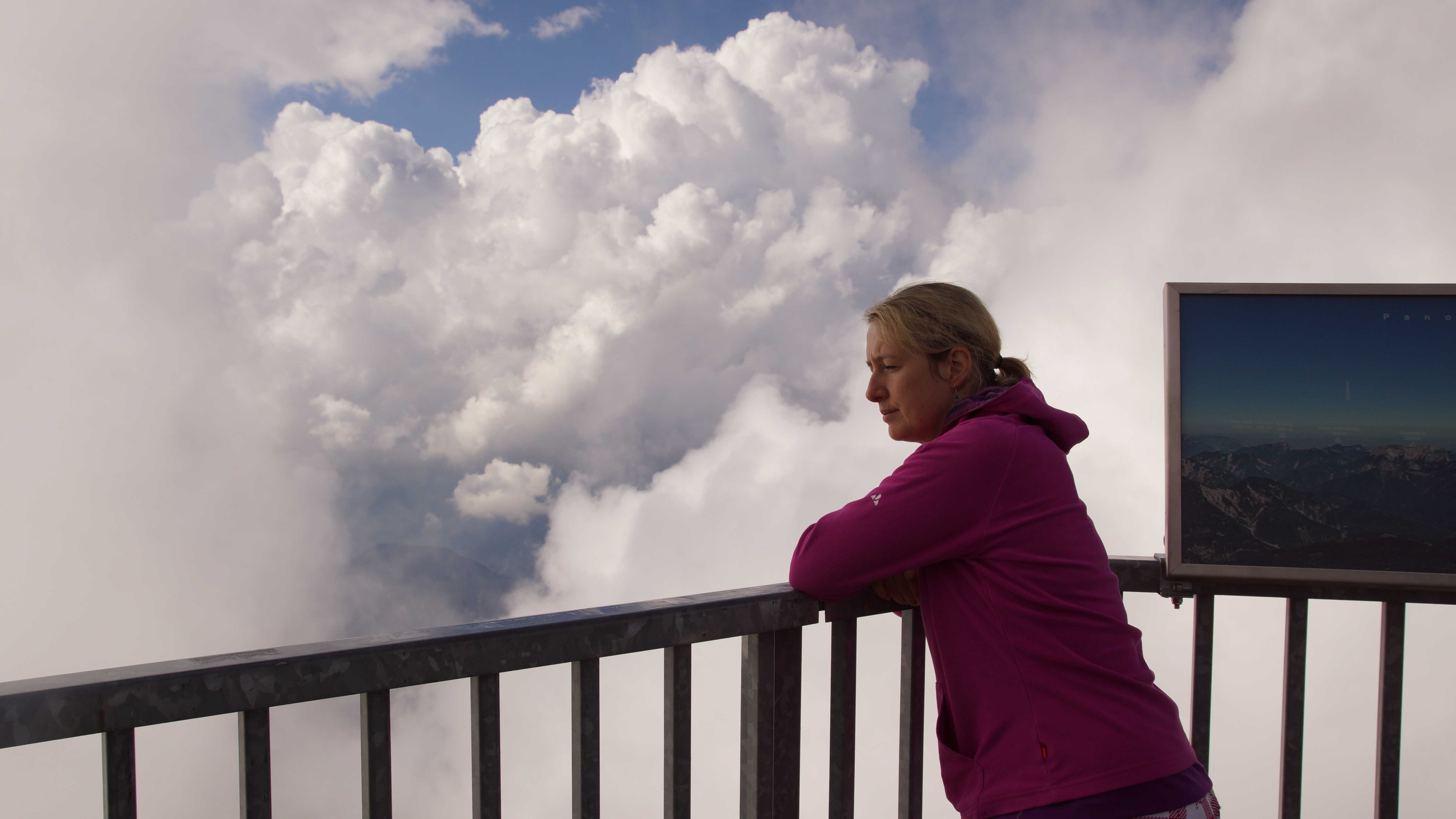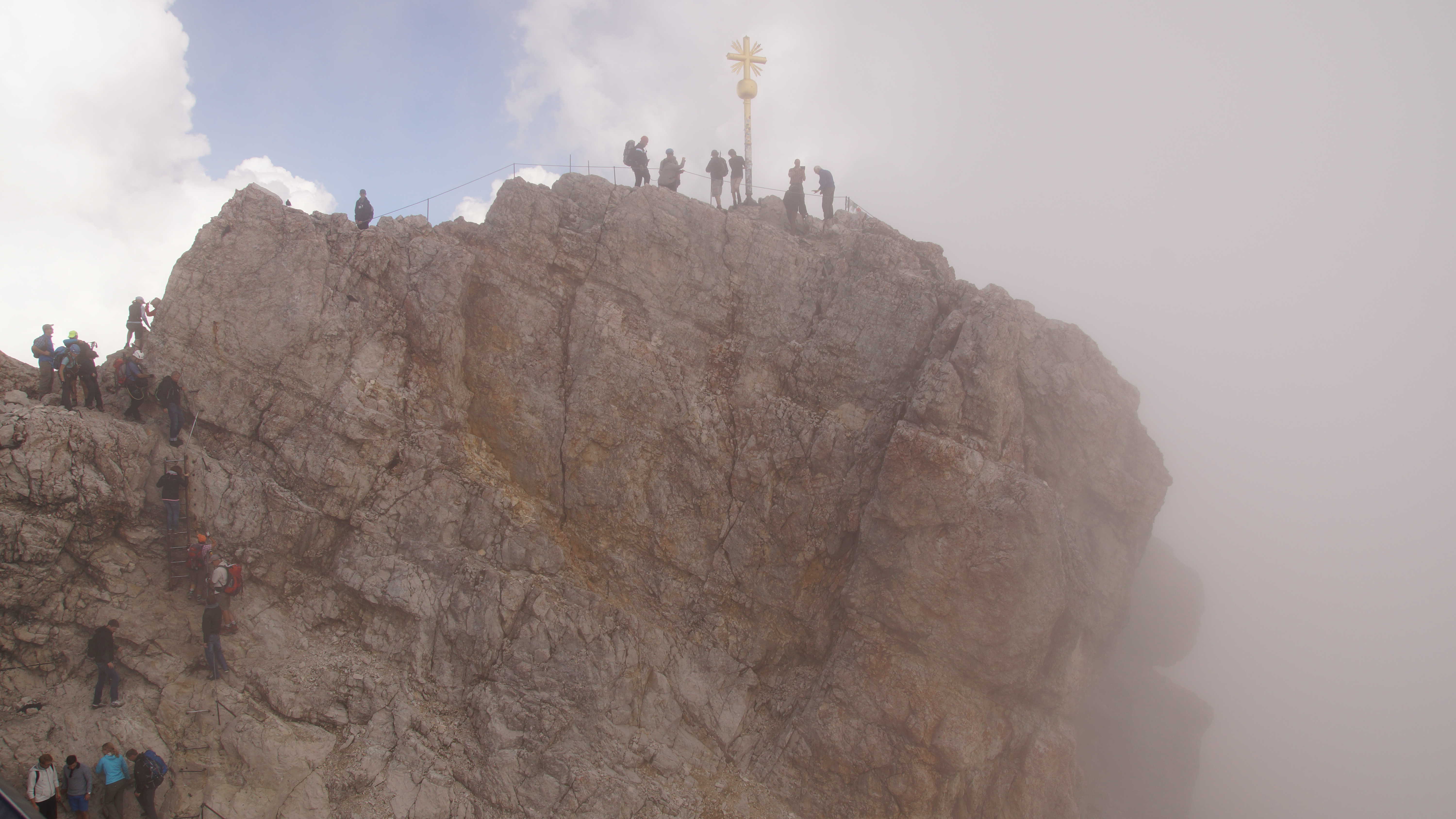 Obern auf der Zugspitze war dann leider das Wetter auch entsprechend und wir hatten keine gute Sicht. Trotzdem war es ein tolles Gefühl, die Zugspitze mit zwei kleinen Gondelfahrten größtenteils zu Fuß erklommen zu haben.