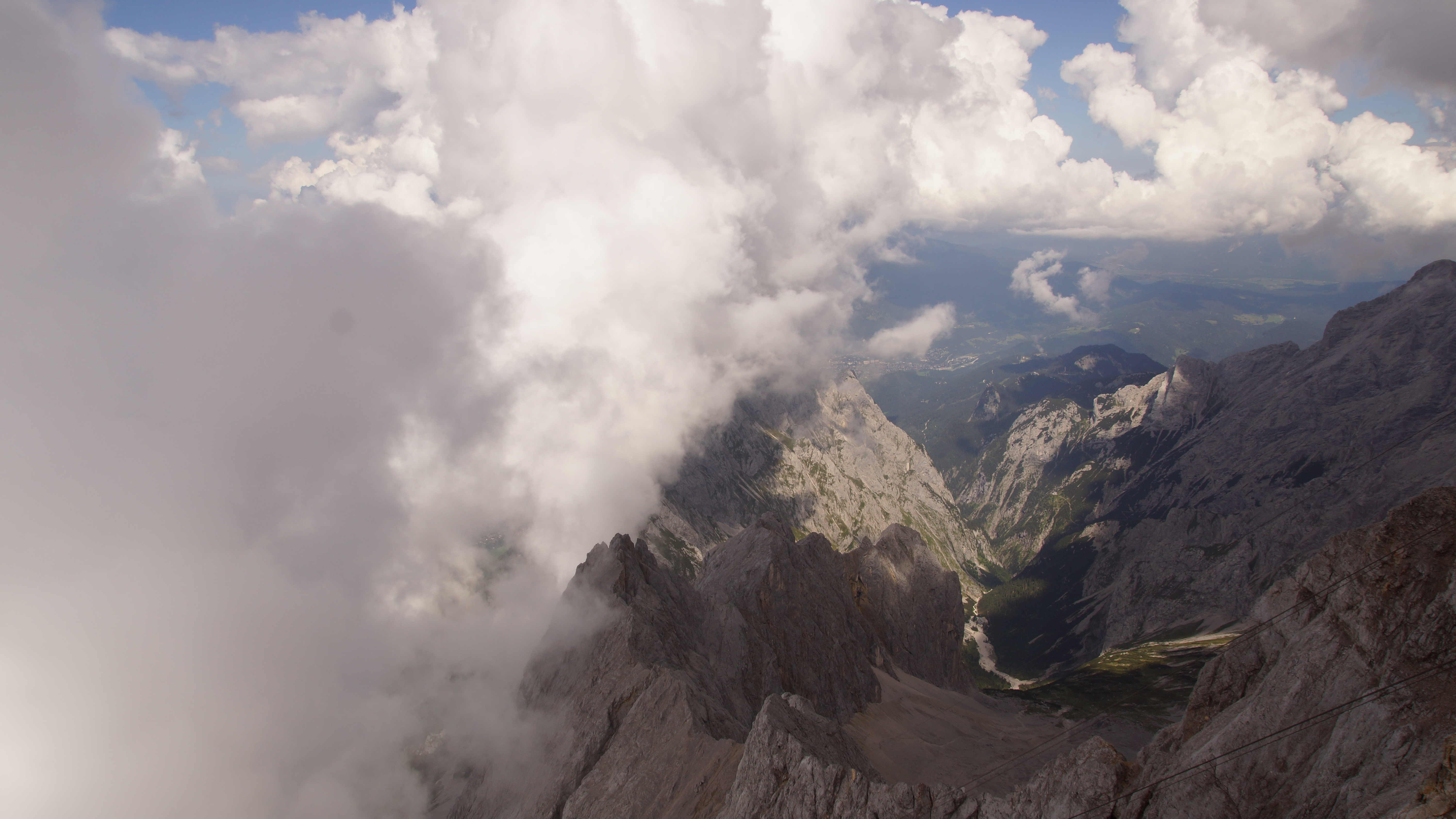 Die letzten Höhenmeter hinauf vom Zugspitzplatt zur Zugspitze haben wir dann mit der Gondel überwunden. Zum einen waren auch wir ziemlich platt und zum anderen wurde es nebelig, was bei dem sehr steilen und schweren Anstieg mit einem kleinen Klettersteig zu hinderlich für uns war.