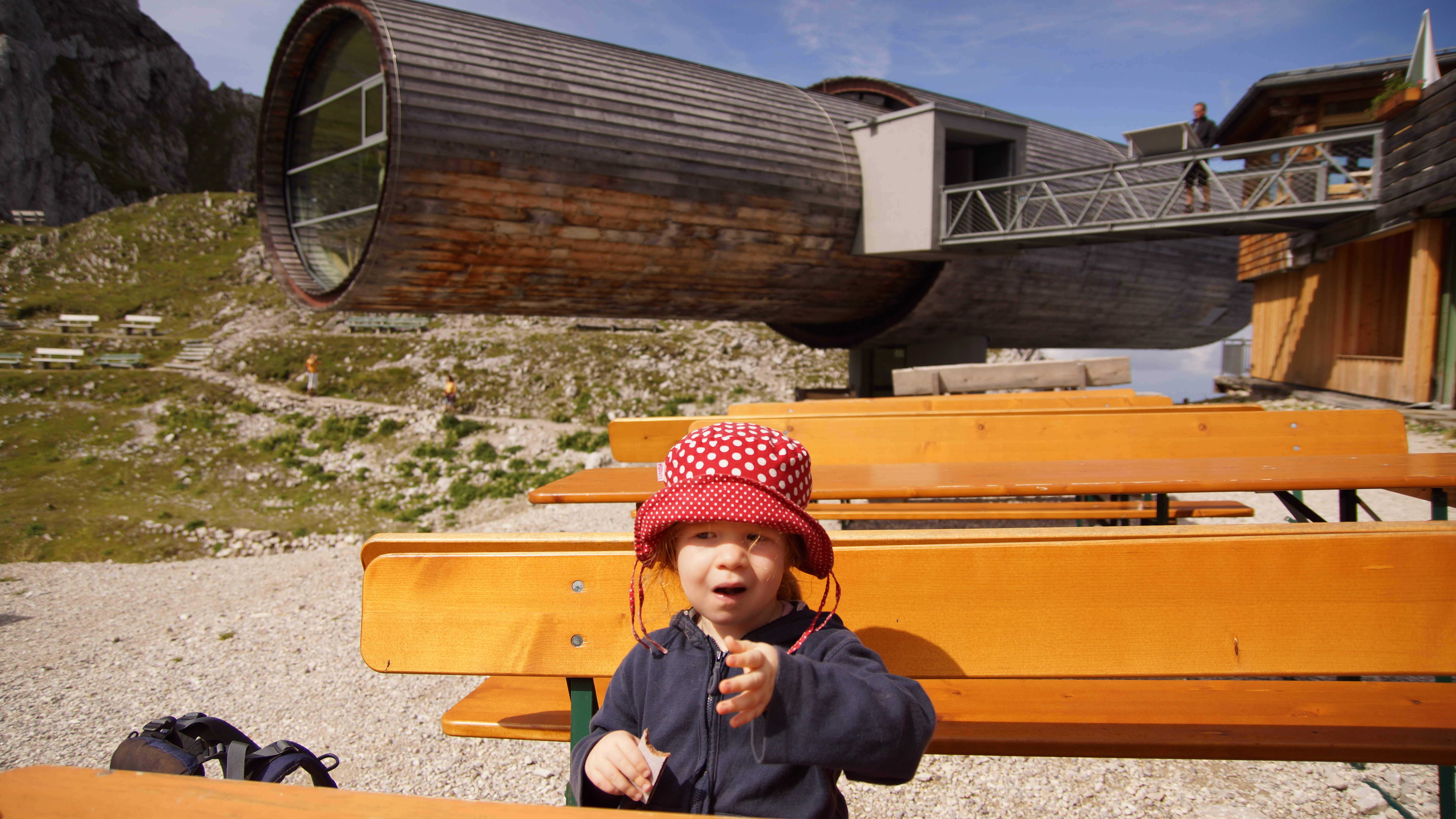 Allein die Gondelfahrt war für Amelie schon faszinierend und sie hat Bauklötze gestaunt. Oben angekommen haben wir uns erstmal mit einem Riegel gestärkt. Dann ging es für Amelie in die Kiepe und wir sind auf den ca. 60 Minuten Panorama-Rundweg gelaufen. Immer wieder haben wir die tollen Aussichten auf die Berge und die Täler genossen. Das Wetter war nämlich super.