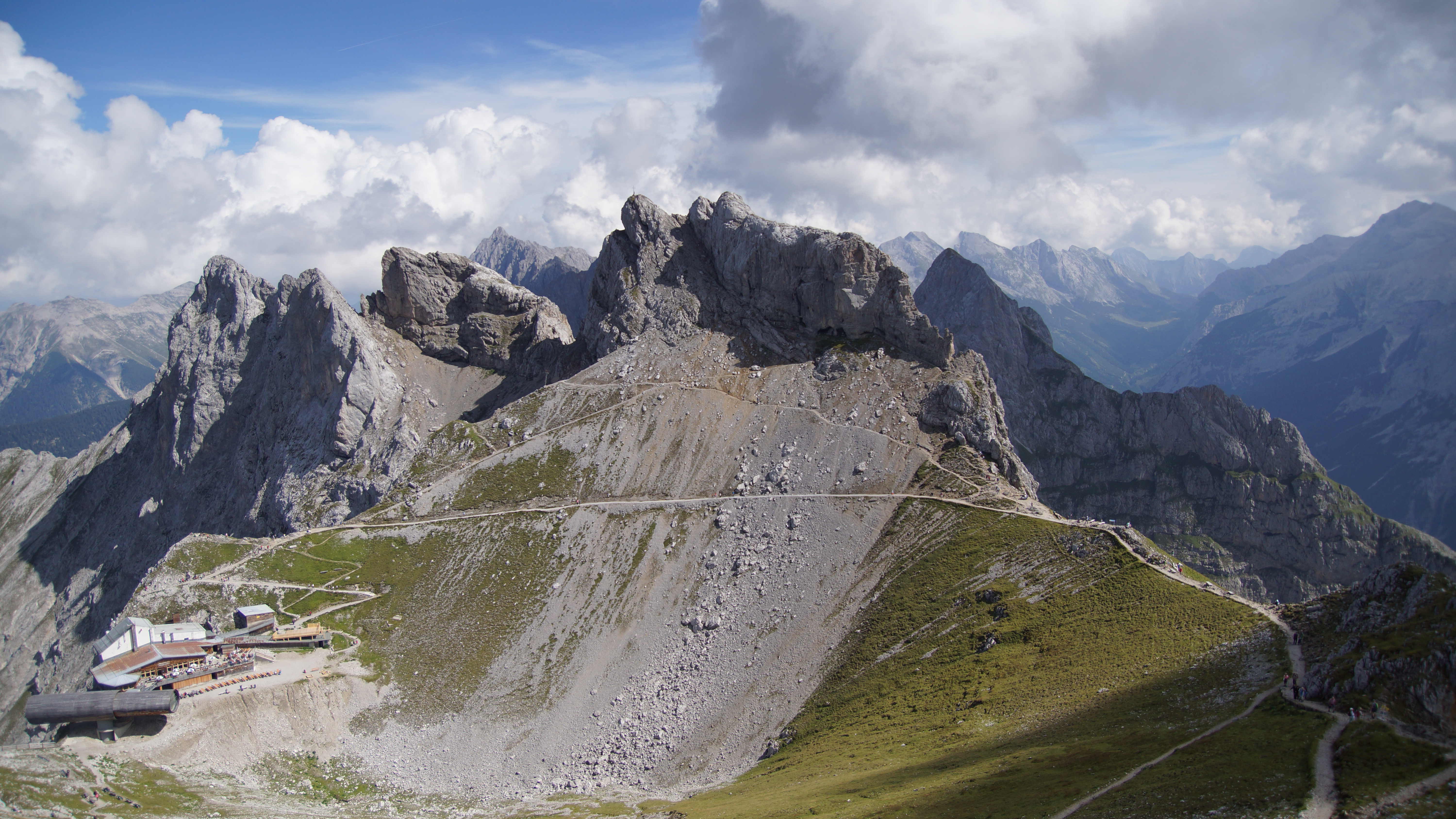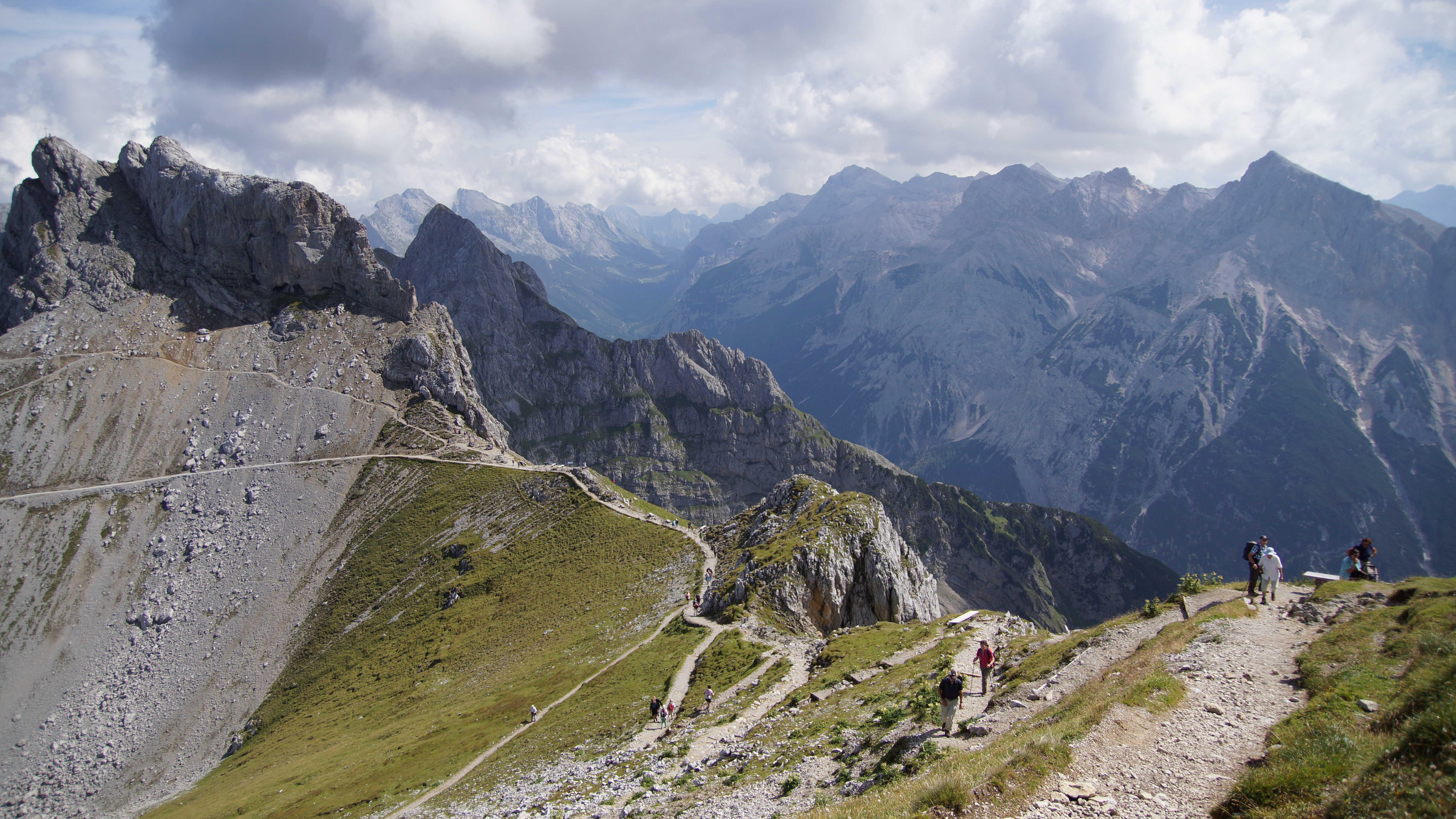 Amelie und ich haben uns zum Wandern fertig gemacht, sind mit dem Bus nach Mittenwald zur Talstation der Karwendelbahn gefahren und sind nach 30 Minuten Schlange stehen dann hinauf ins Karwendel mit der Gondel gefahren. Die Karwendelbahn ist nach der Zugspitze die zweithöchste Bergbahn in Deutschland und geht auf 2.244 m hoch.