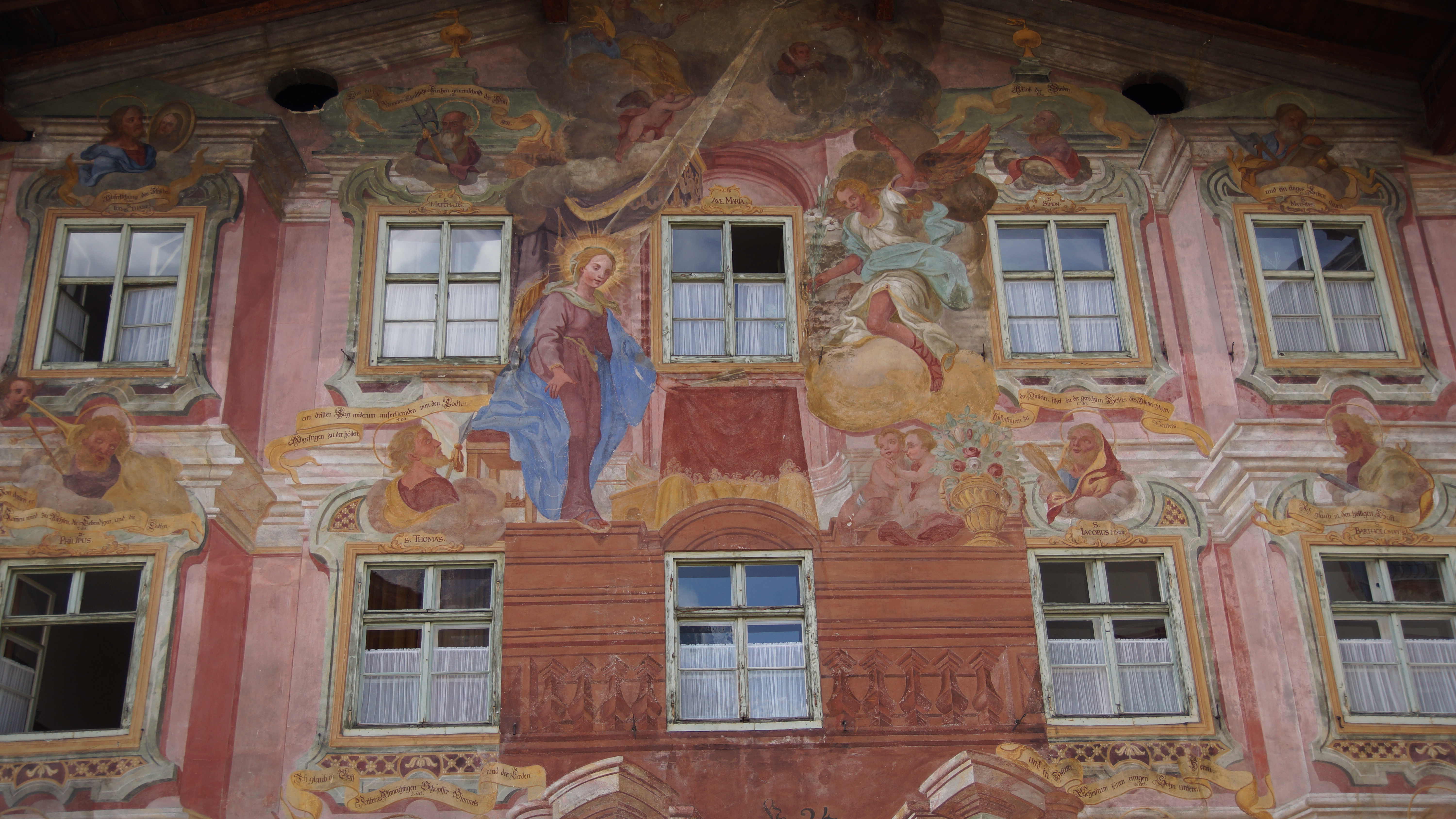 Danach haben wir uns dann noch die tollen Lüftl-Malereien an den alten Häusern angeschaut. Die meisten Malereien erzählen Bibelgeschichten oder Geschichten vom Bozenmarkt, der hier in Mittenwald von 1487 bis 1679 stattfand und viel Reichtum der Region beschert hatte.
