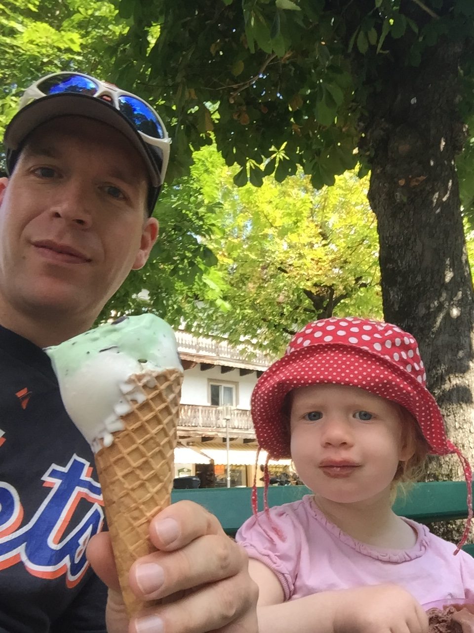 Da Amelie die Bergtour so toll mitgemacht hat und so eine Tour auch hungrig macht, sind wir erst einmal im Ortskern ein Eis essen gegangen.