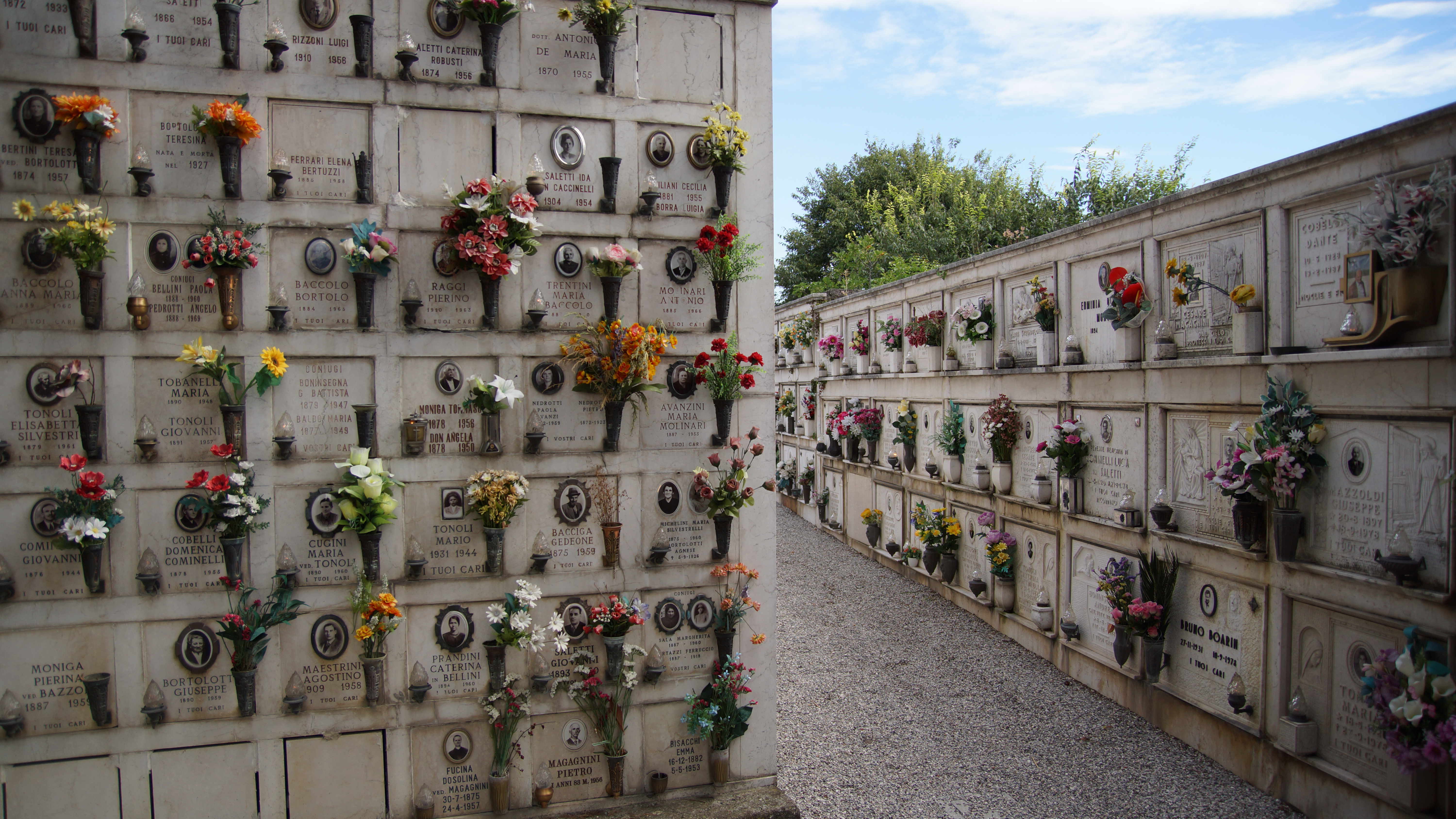 Wir haben den tollen Kirchhof besichtigt mit den vielen Grabsteinen in der Mauer.