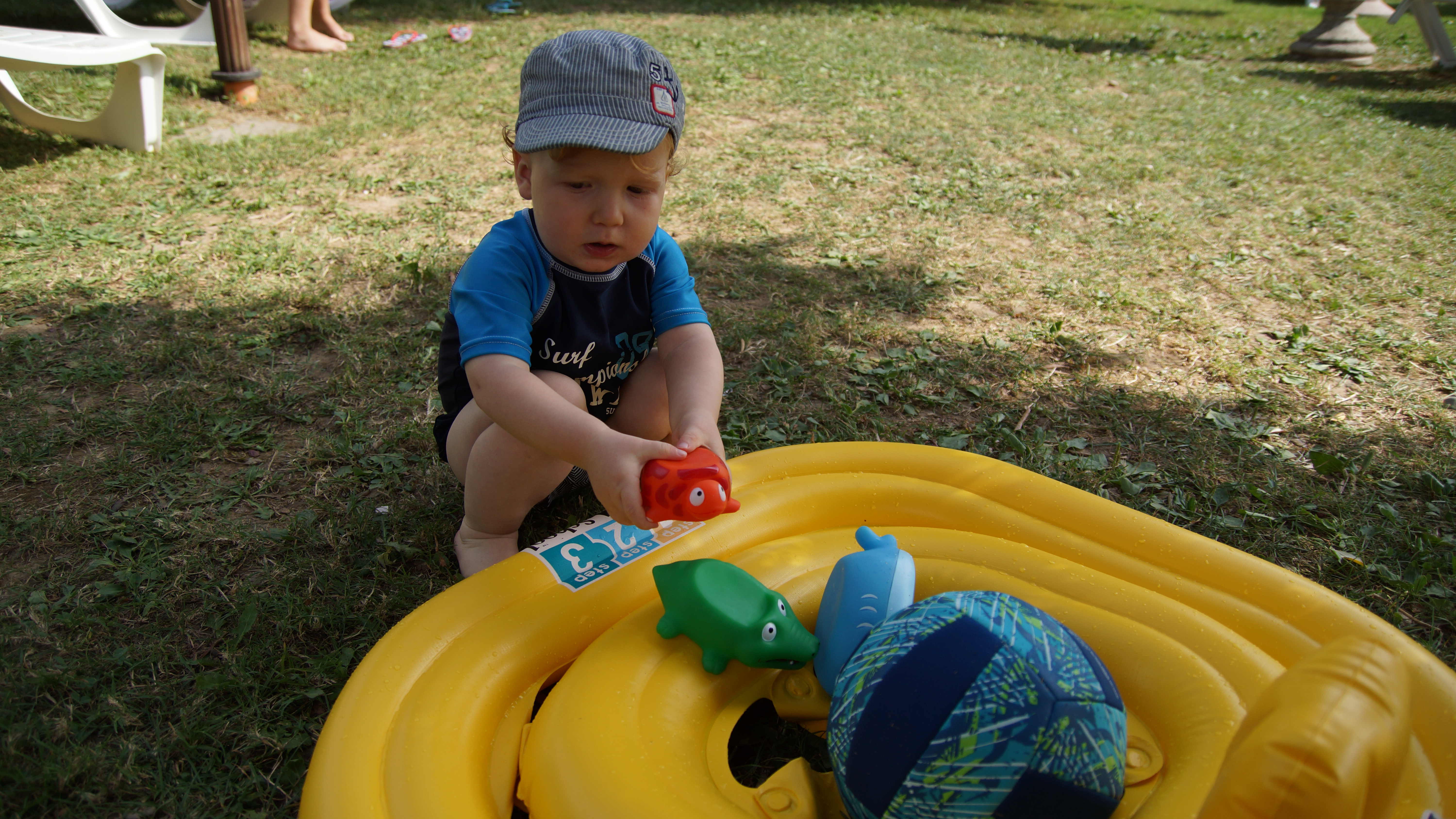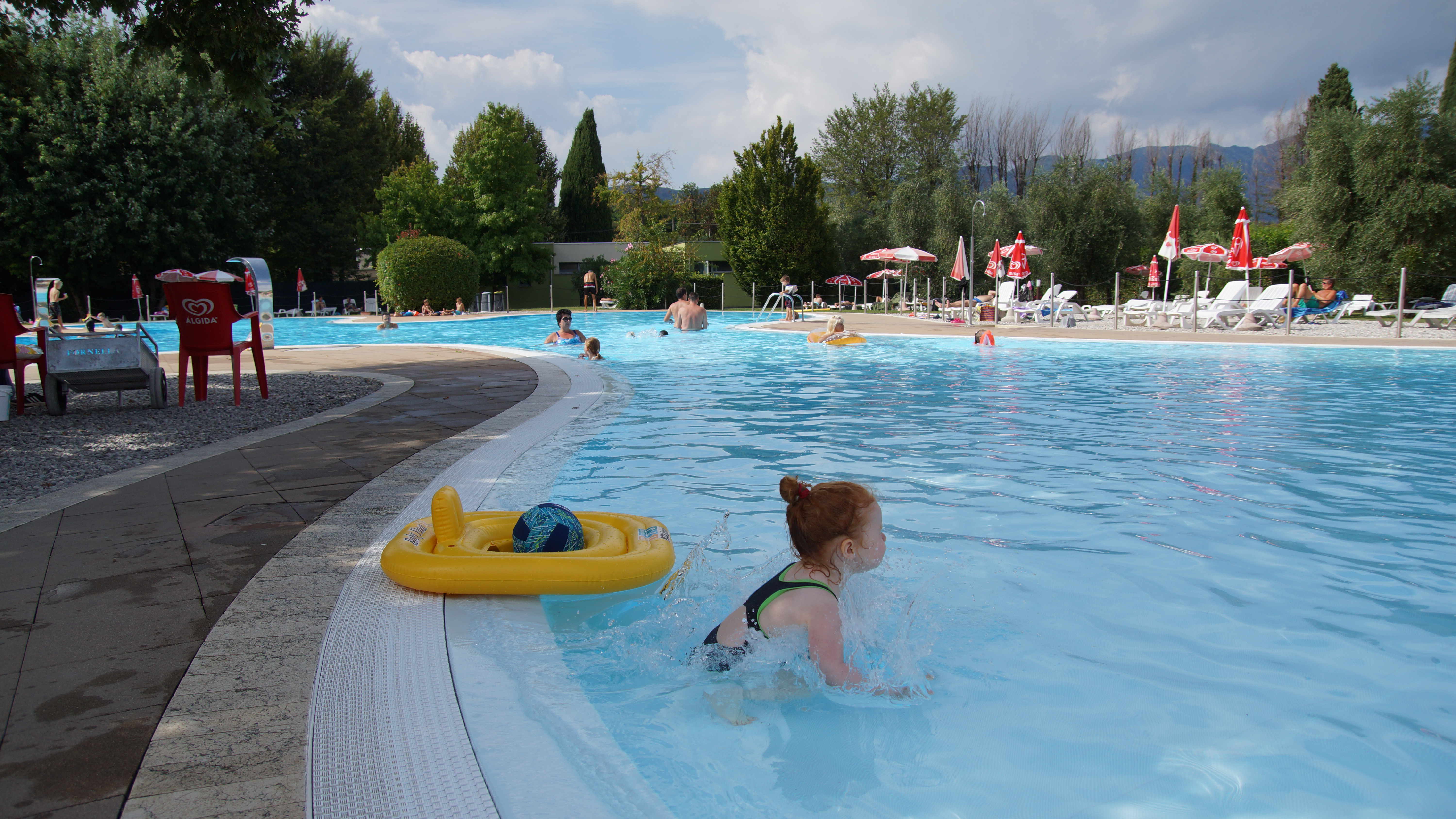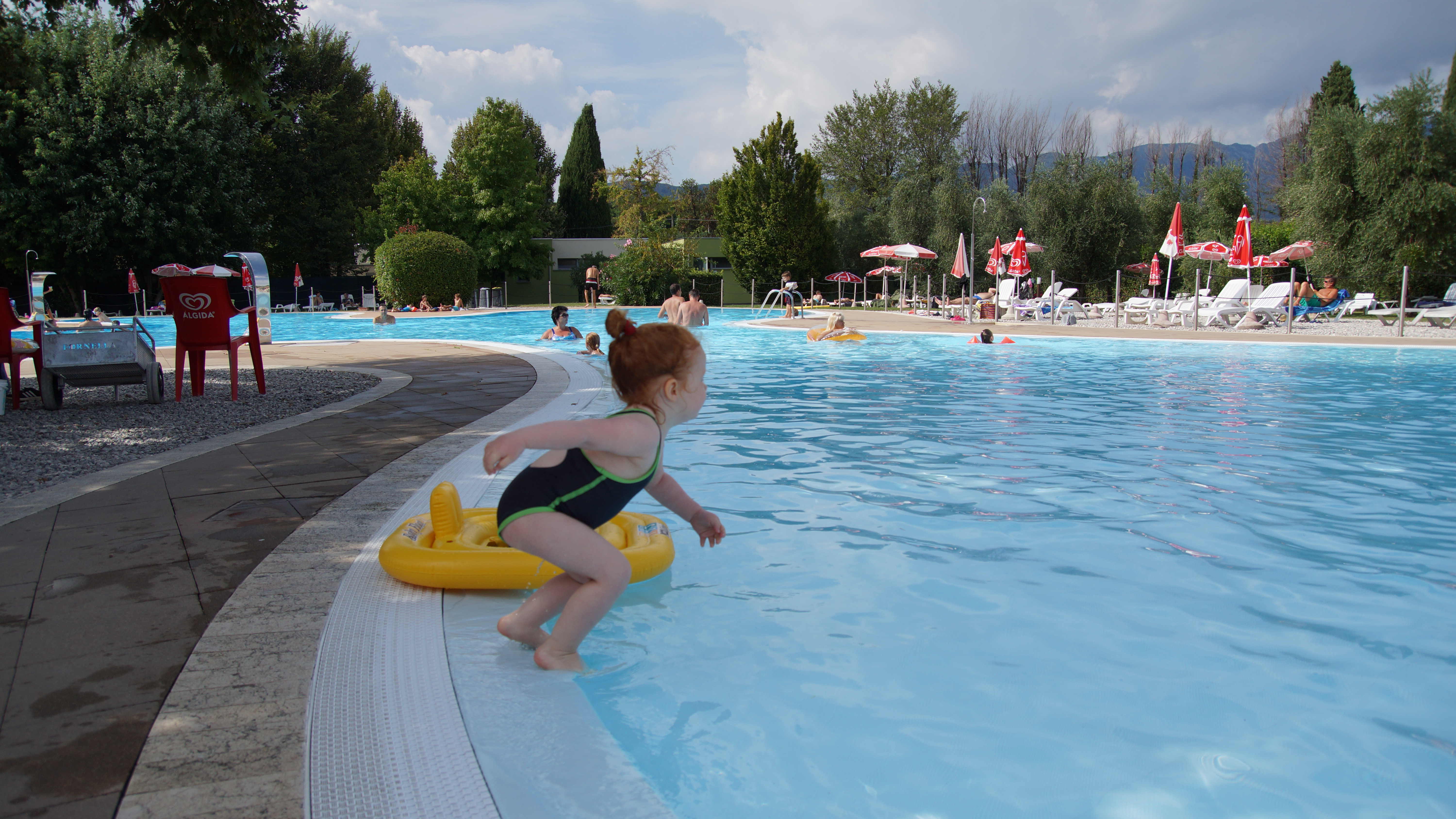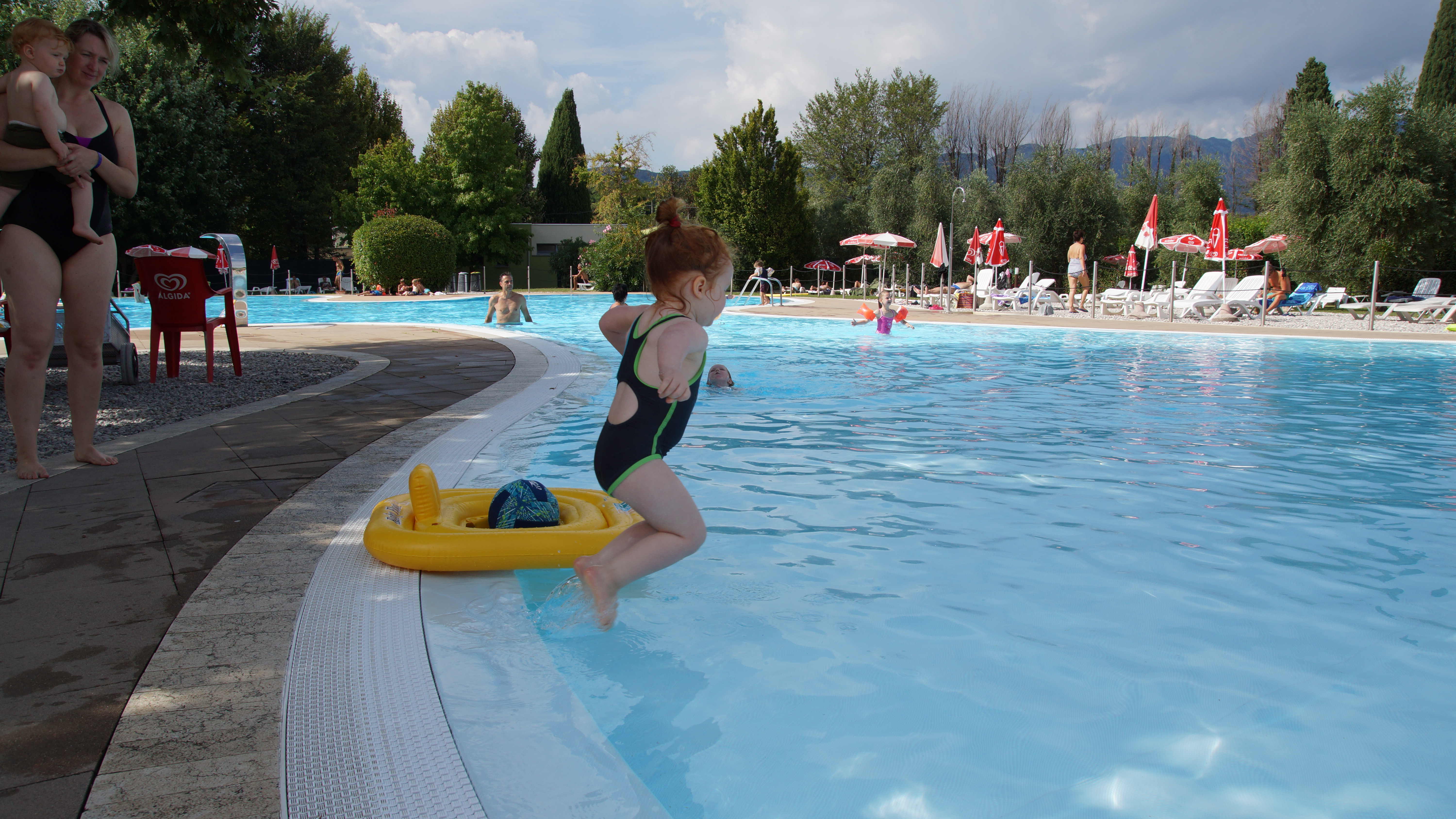 Nach einem kleinen Mittagssnack mit anschließendem Mittagsschlaf sind wir wieder zu unserem Pool hier auf dem Campingplatz gegangen. Mittlerweile hat auch Finn seinen anfängliche Scheu abgelegt und genießt das Wasser in vollen Zügen. Amelie spring mit Begeisterung vom Beckenrand in den Pool (natürlich nur da, wo sie auch stehen kann).