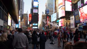 Um 18 Uhr sind wir dann mit dem Ziel Time Square aufgebrochen. Der Time Square ist voll, verrückt, laut und auf eine komische Art auch beeindruckend wie immer. Wir haben uns durch die Menschenmassen gekämpft und in einer Foodstation noch Pizza gegessen, bevor wir direkt am Time Square ins Palace Theatre gegangen sind.