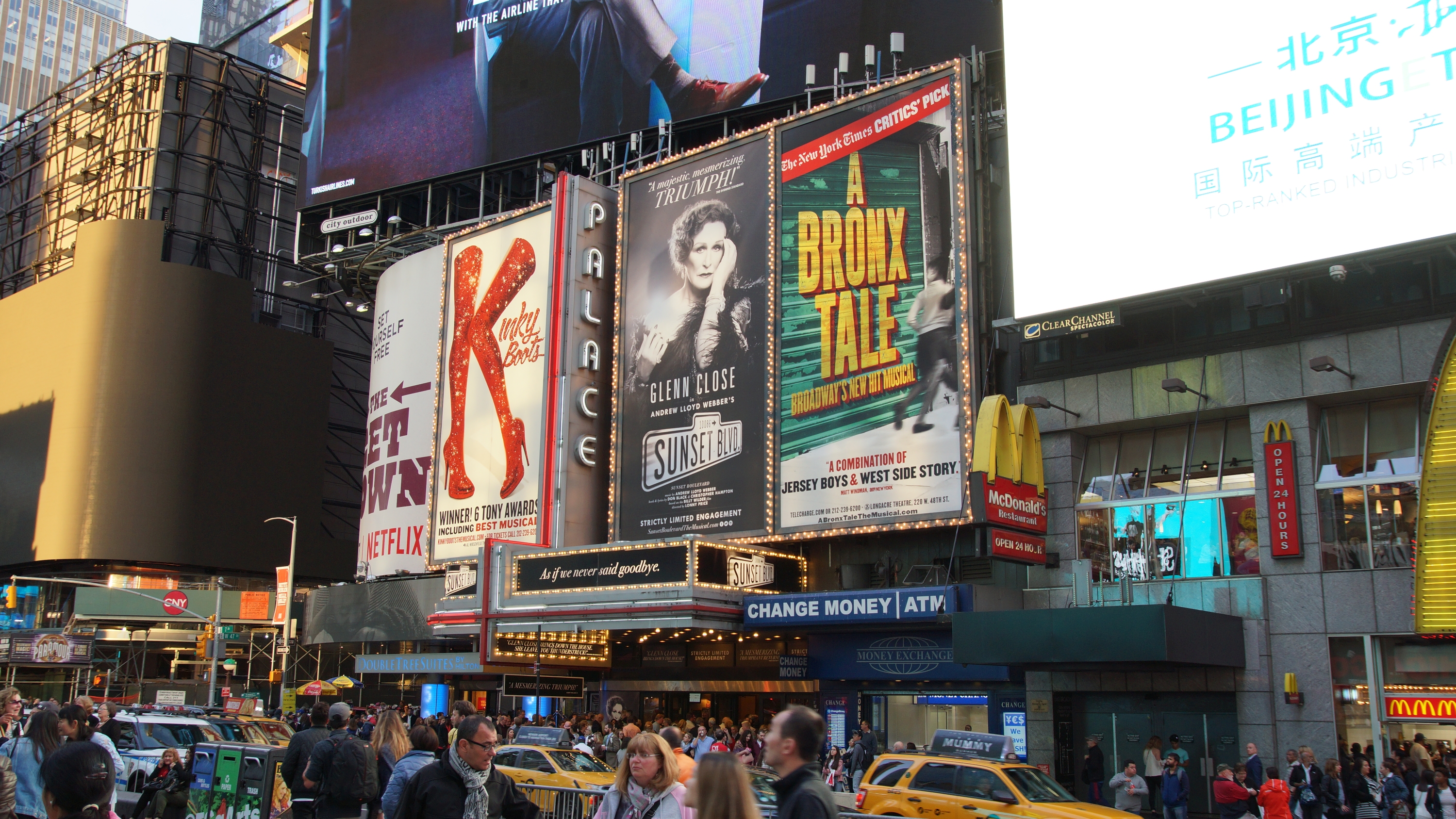 Um 18 Uhr sind wir dann mit dem Ziel Time Square aufgebrochen. Der Time Square ist voll, verrückt, laut und auf eine komische Art auch beeindruckend wie immer. Wir haben uns durch die Menschenmassen gekämpft und in einer Foodstation noch Pizza gegessen, bevor wir direkt am Time Square ins Palace Theatre gegangen sind.
