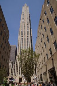 Das Wetter war heute anders als vorhergesagt super: Sonne pur. Deshalb haben wir unser Tagesprogramm etwas umgestellt und sind zuerst zum Rockefeller Center gefahren. Nach dem Sicherheitscheck ging es dann auch schon bald im Aufzug in den 69 Stock. Da wir „Top of the Rock“ schon kannten, haben wir uns gar nicht auf den ersten zwei Aussichtsplattformen mit Glasscheiben aufgehalten und sind direkt auf die oberste Plattform im Freien ohne die Sicherheitsscheibn gegangen. Hier braucht es diese Scheiben nicht, da direkt darunter die untere Aussichtsplattform ist. Von „Top of the Rock“ hat man meiner Meinung nach die genialsten Aussicht auf New York: Richtung Süden auf Manhattan mit dem Empire State Building los perfekte Kulisse und Richtung Norden blickt man auf den riesigen Central Park umrandet von der Upper East – und Westside und ganz im Norden von Harlem. Diese super Aussicht haben wir erstmal ausgiebig bei dem tollen Wetter genossen, bevor wir uns wieder unten auf dem Rockefeller Plaza an der 5th Avenue mit einem Hot Dog gestärkt haben.