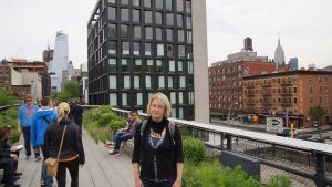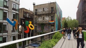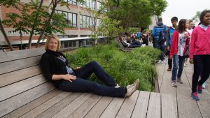 Nach einem leckeren Kaffee und einem Blueberry Muffin, sind wir zu Fuß zu den High Lines im Meat District gelaufen. Das ist eine etwas mehr als 2 km lange alte Güterzugtrasse, die zu einer schönen Parkanlage umgebaut wurde und die man die gesamten 2,33 km entlanglaufen kann. Das haben wir dann auch getan. Immer wieder hat man von hier tolle Ausblicke auf den Hudson River oder die Hichhäuser von Manhattan.