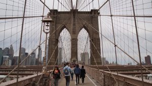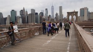 Der Rückweg zum Hotel führte mich dann zu Fuß über die Brooklyn Bridge. Die Brücke ist wirklich super. Auf der oberen Ebene dürfen die Fußgänger und Fahrradfahrer benutzen und unterhalb fahren die Autos. Wenn man von Brooklyn nach Manhattan läuft, blickt man permanent auf die beeindruckende Skyline.