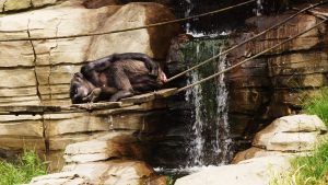 Chimpanzee sleeping on a bridge – by Torsten B.