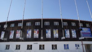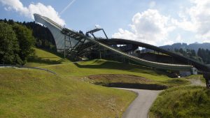 Pünktlich um 09:30 Uhr haben uns heute Oma und Opa an unserer Ferienwohnung abgeholt und wir sind mit unseren Autos zu dem Ausgangspunkt unserer heutigen Wanderung nach Garmisch-Partenkirchen zur großen Olympiaschanze gefahren. Dummerweise hatten Sandra und ich die Hüte für die Kinder vergessen, so dass wir beide noch schnell zum nächsten Sportgeschäft laufen mussten. Die Kinder sind derzeit schon mit Oma und Opa zum Eingang der Partnachklamm vorgelaufen.