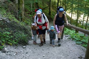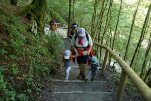 Am Ausgang der Klamm konnten wir die Kinder wieder aus den Kiepen nehmen und der kurze Anstieg zu der Mittelstation konnte zu Fuß bewältigt werden.