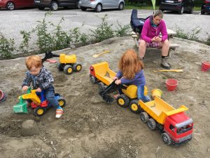 An der Talstation haben die Kinder dann den Sandkasten von dem kleinen Spielplatz komplett umgegraben. Völlig k.o. von der schweren Sandarbeit, haben Amelie und Finn die Autofahrt für einen Mittagsschlaf genutzt.