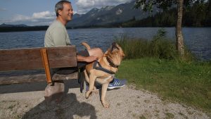 Den Nachmittag haben wir dann bei uns am Ferienhaus verbracht, da wir uns um 15:30 Uhr mit Catrin und Veit und ihrem Hund Leon verabredet hatten. Zusammen mit den Dreien, sind wir dann vor dem Abendessen noch einmal zum Barmsee gelaufen. Hier haben Amelie und Finn mit Begeisterung Steine in den See geworfen.