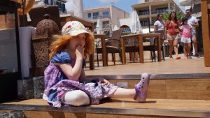 Nach dem langen Ausflug gestern wollten wir heute nur in der Nähe einen kleinen Ausflug nach Cala Ratjada, einer kleinen Hafenstadt machen. Also haben wir uns alle nach dem Frühstück fertig gemacht und sind nach ca. 15 Minuten am Hafen angekommen. Da wir alle unterschiedlich geparkt hatten mussten wir erstmal Oma,Opa, Rike, Michi und Lea suchen. Auf der Promenade am Meer haben wir sie dann auch recht schnell gefunden. Hier gab es erstmal einen großen Streit, wer denn an Oma’s Hand darf. Das ist leider ein permanenter Streit hier im Urlaub unter den drei Kindern.