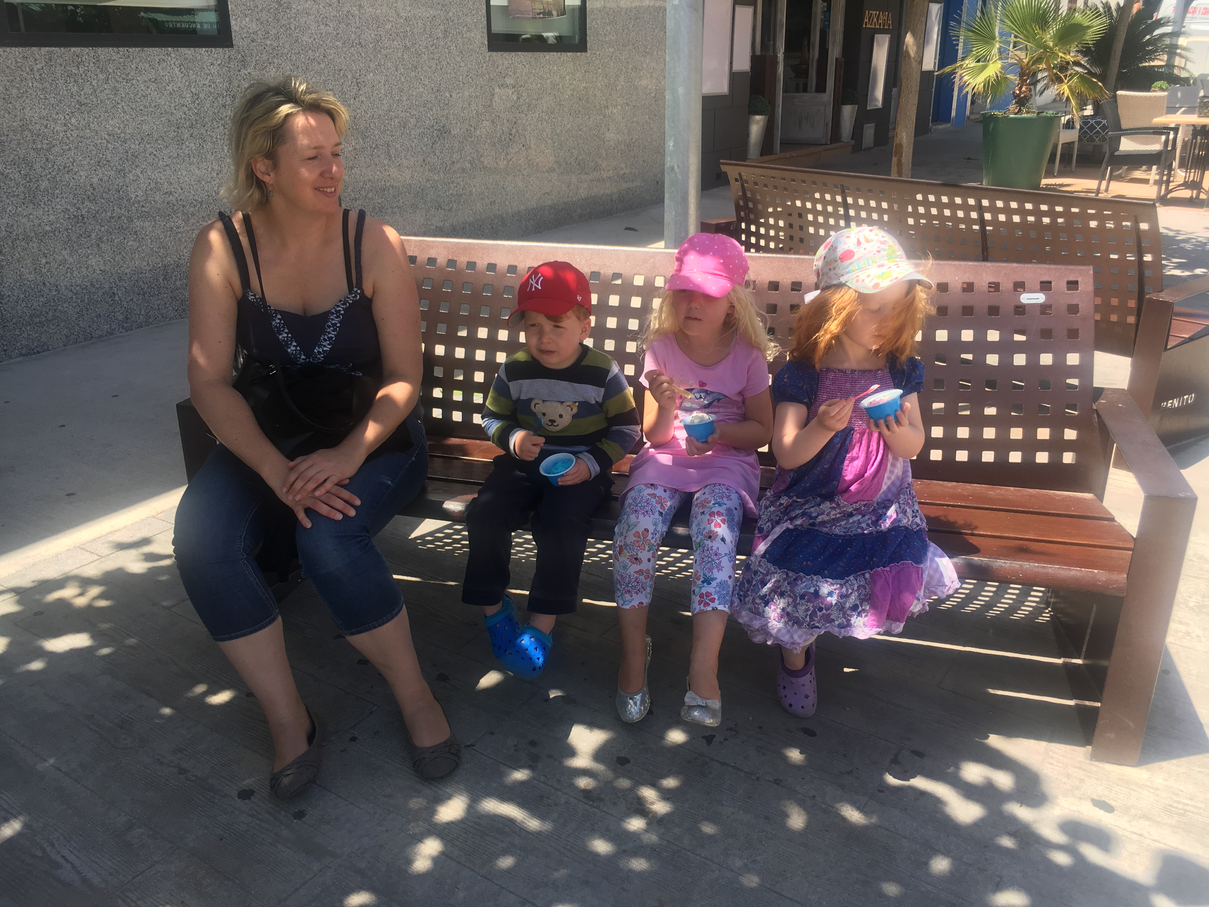 Das kleine Hafenstädtchen ist ganz niedlich und auf der Promenade haben wir auch einen kleinen Spielplatz für die Kinder gefunden. Nach dem Austoben haben wir uns alle direkt am Hafen in einem kleinen Restaurant mit leckerem Hugo, Bier oder Saftschorle gestärkt. Danach hat Michi noch zum Eis eingeladen.