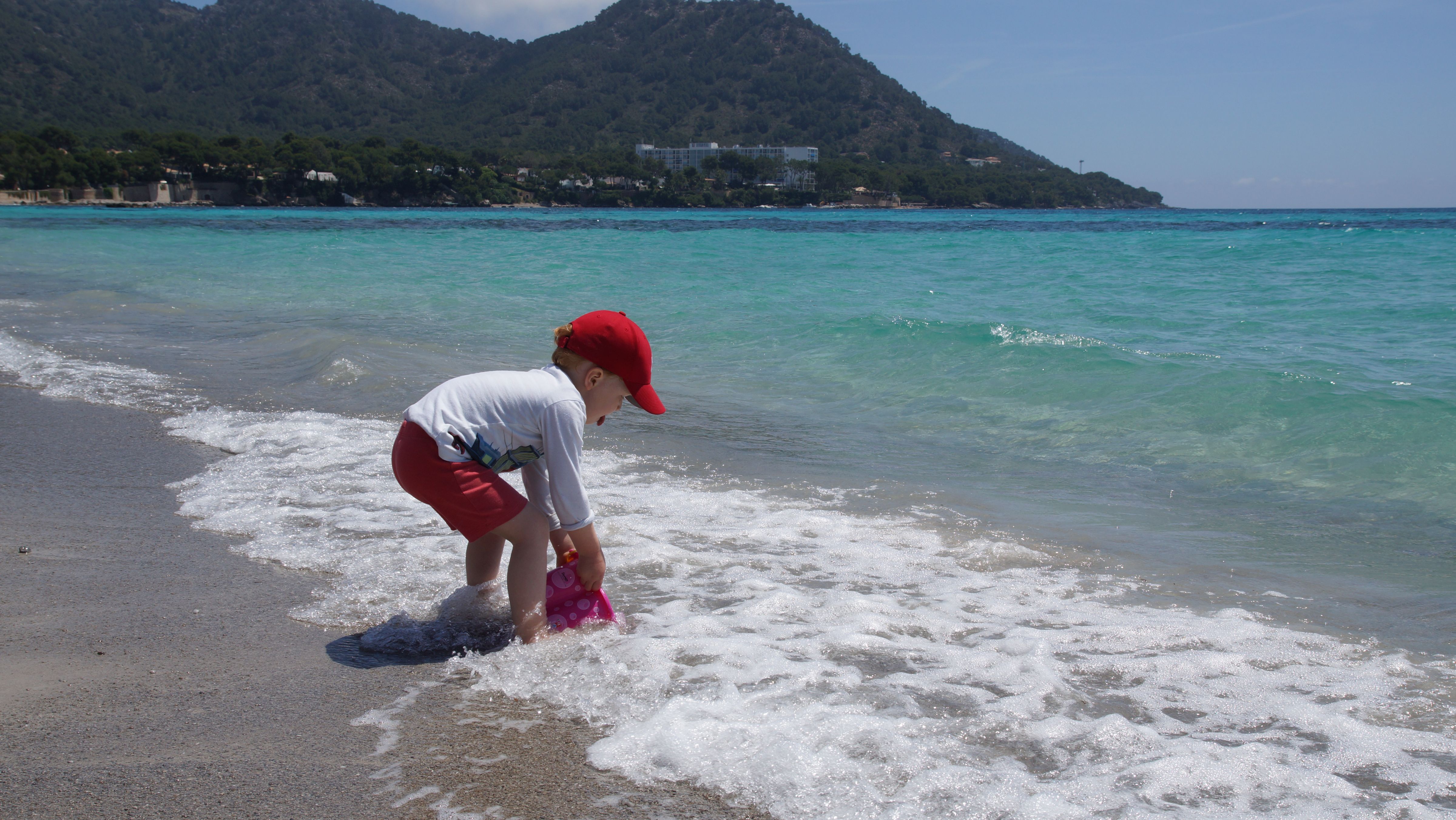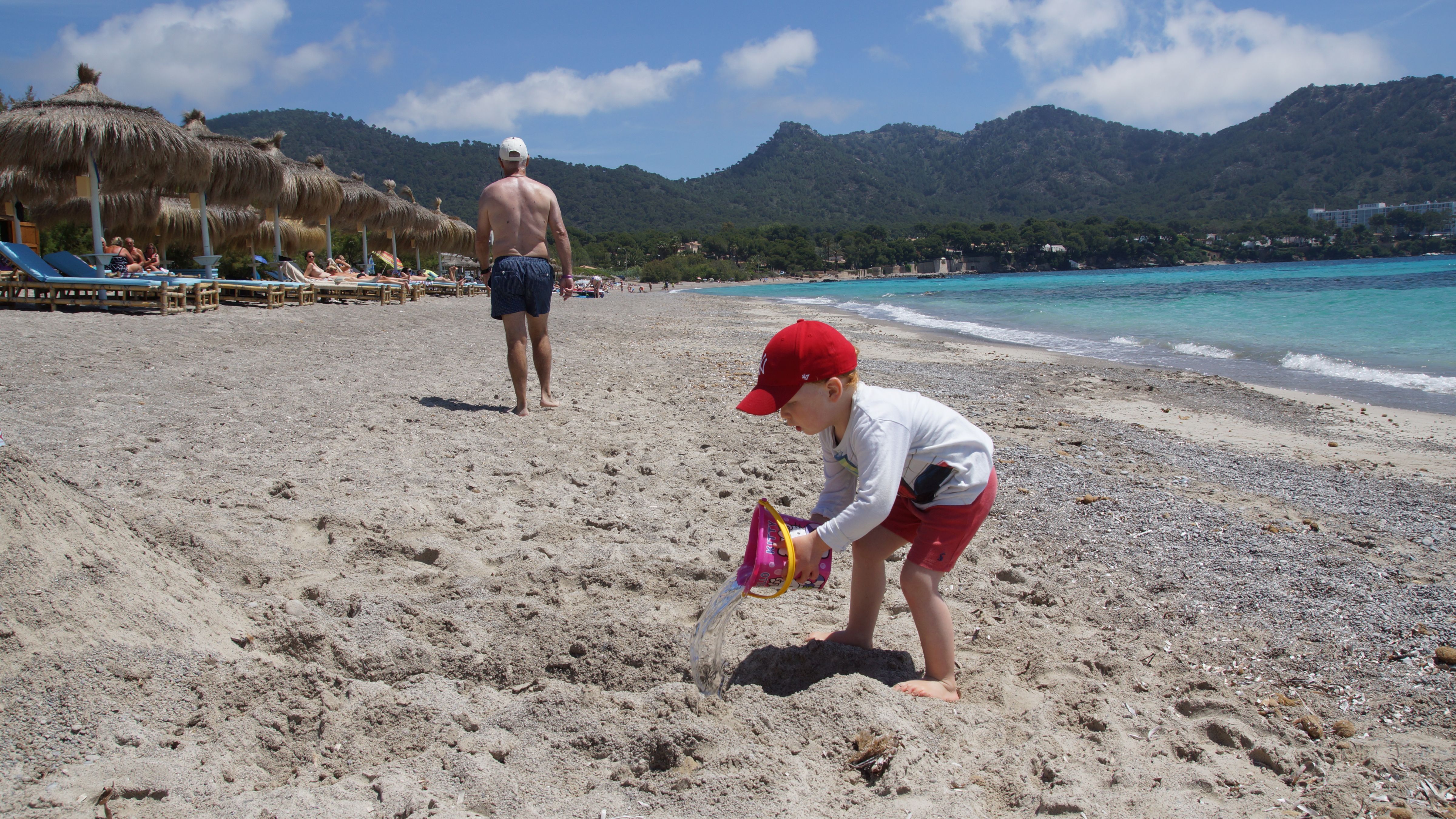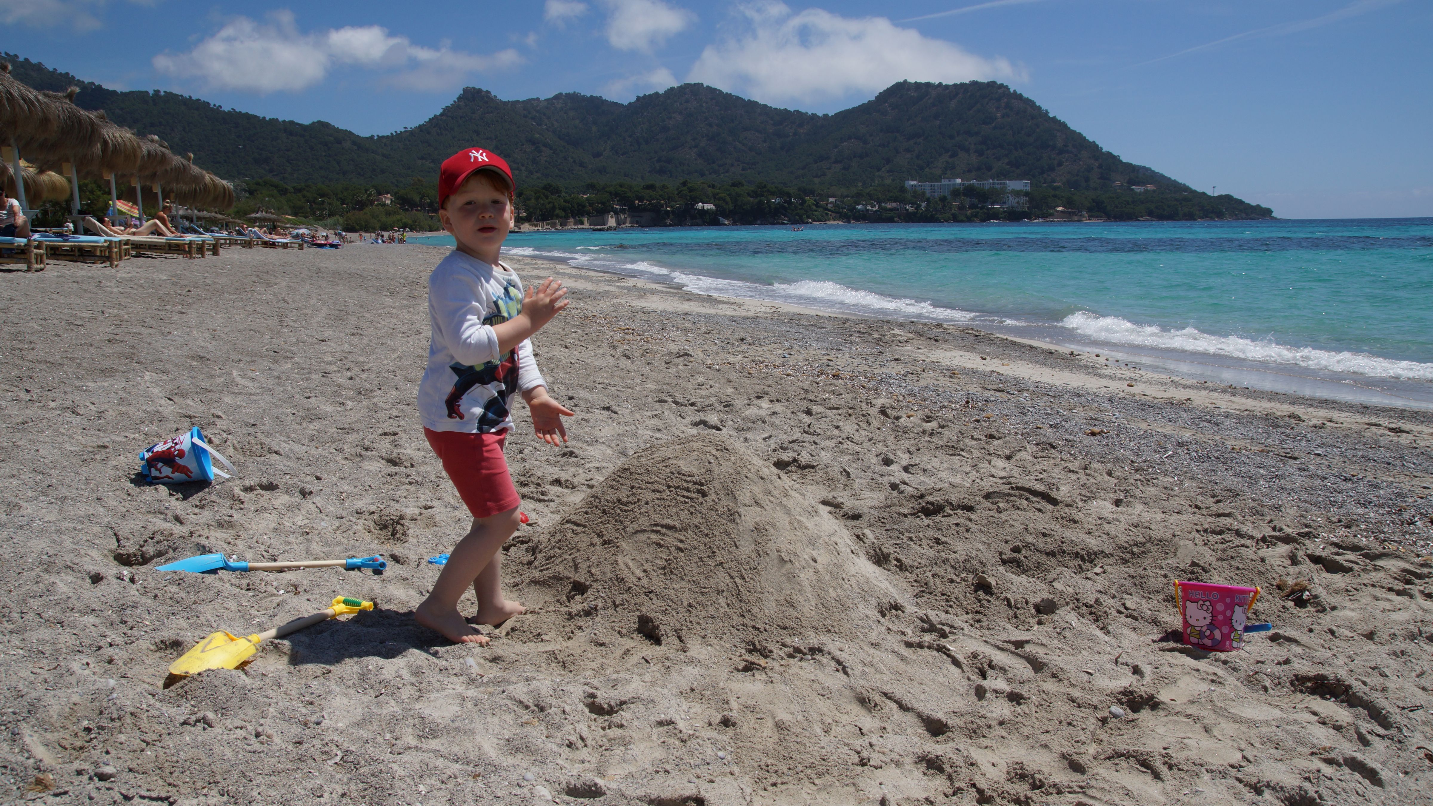 Während die Mädchen ihren Spaß damit hatten die Füße in die Wellen zu halten, stand bei Finn das Bauen einer Sandburg auf dem Programm. Und als die Burg soweit fertig war, wurde unermüdlich Wasser in den Burggraben gefüllt.