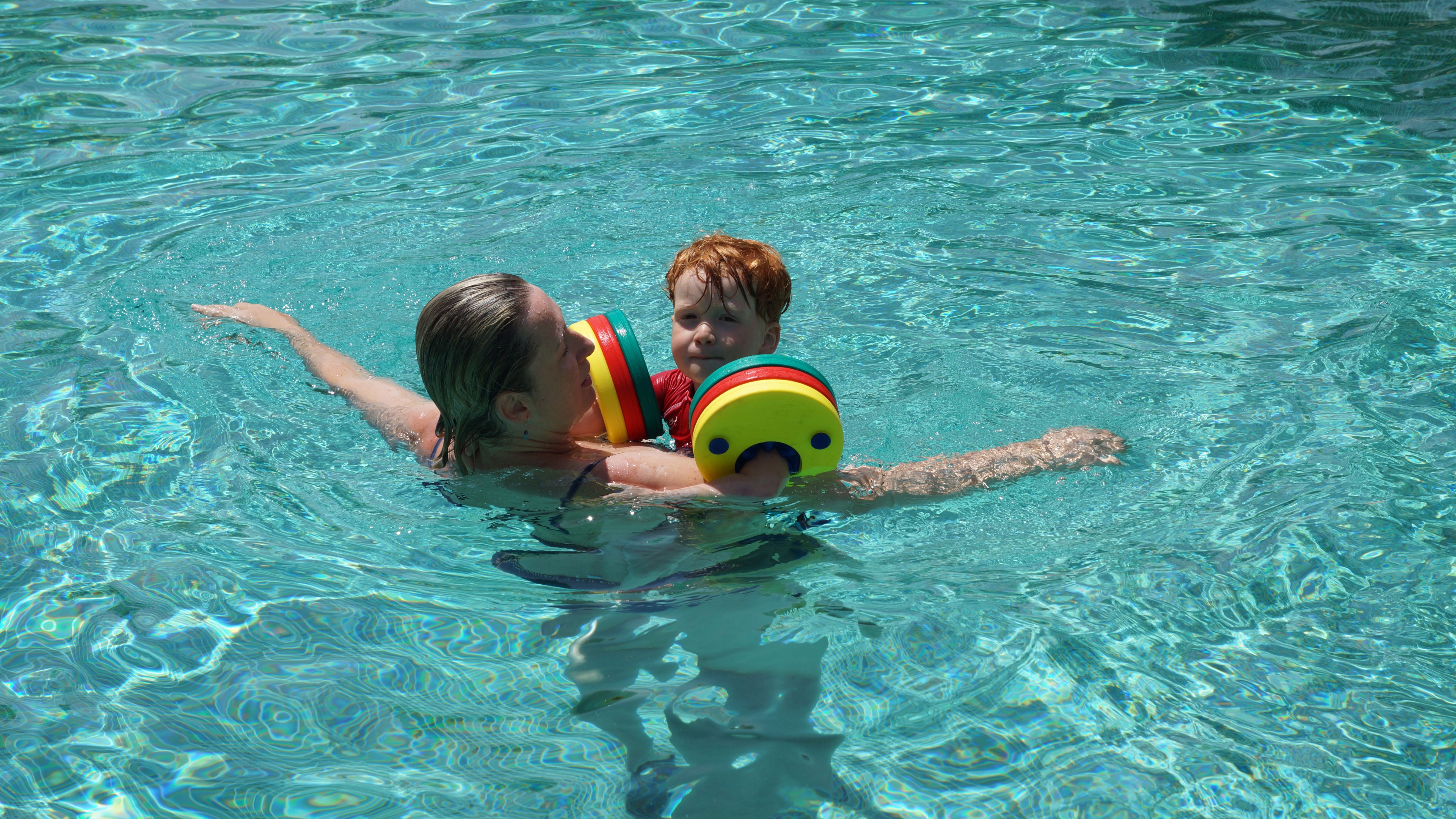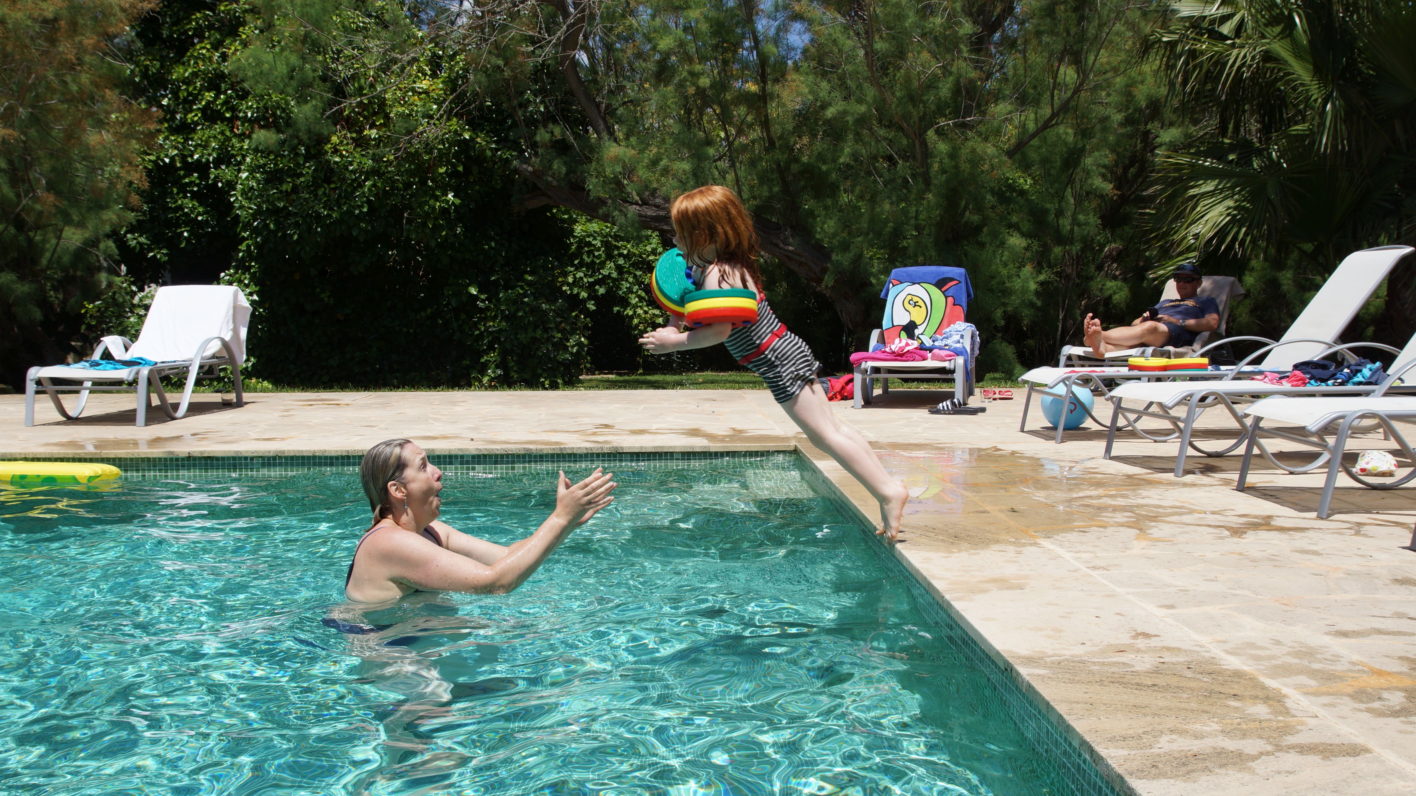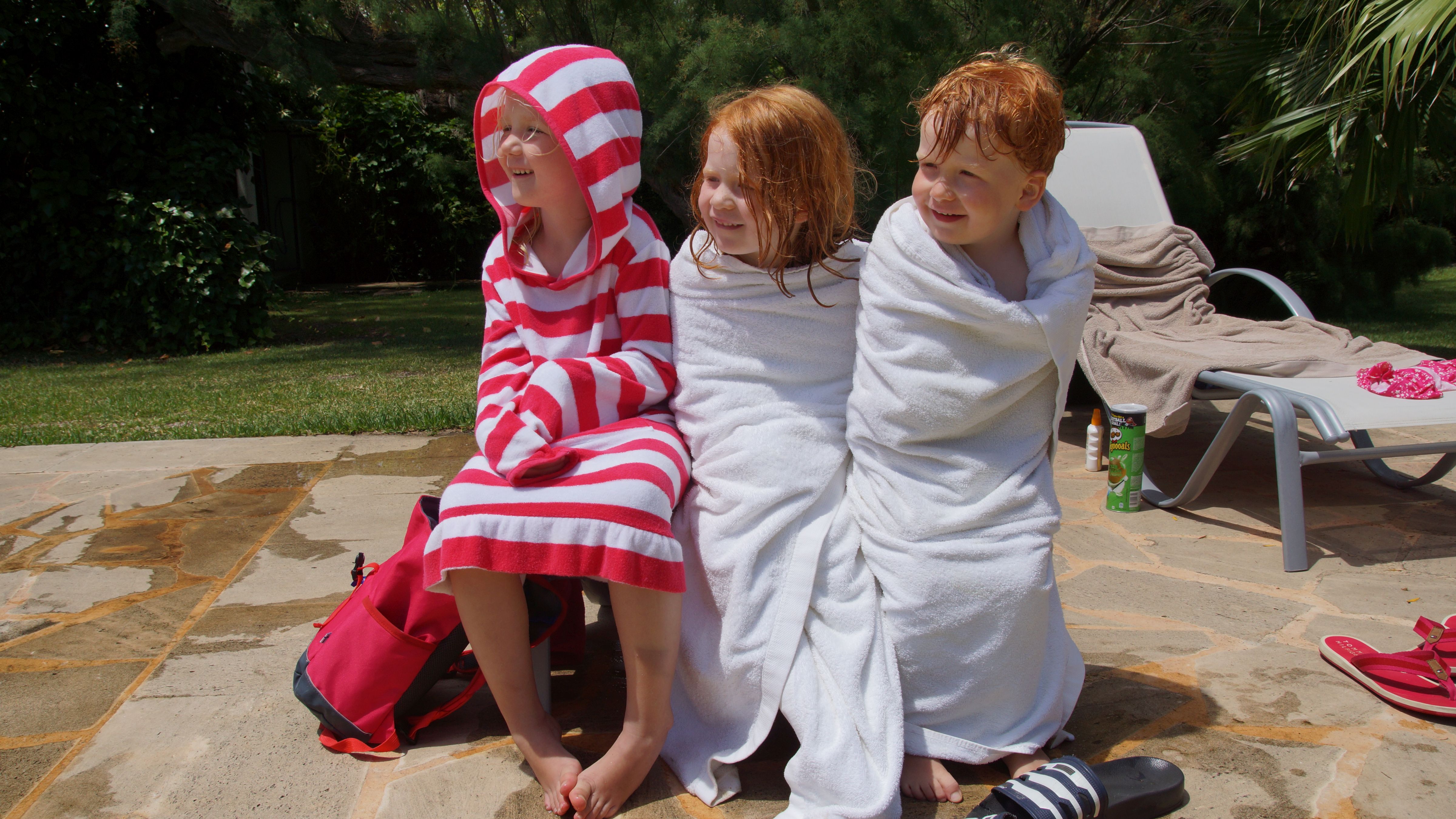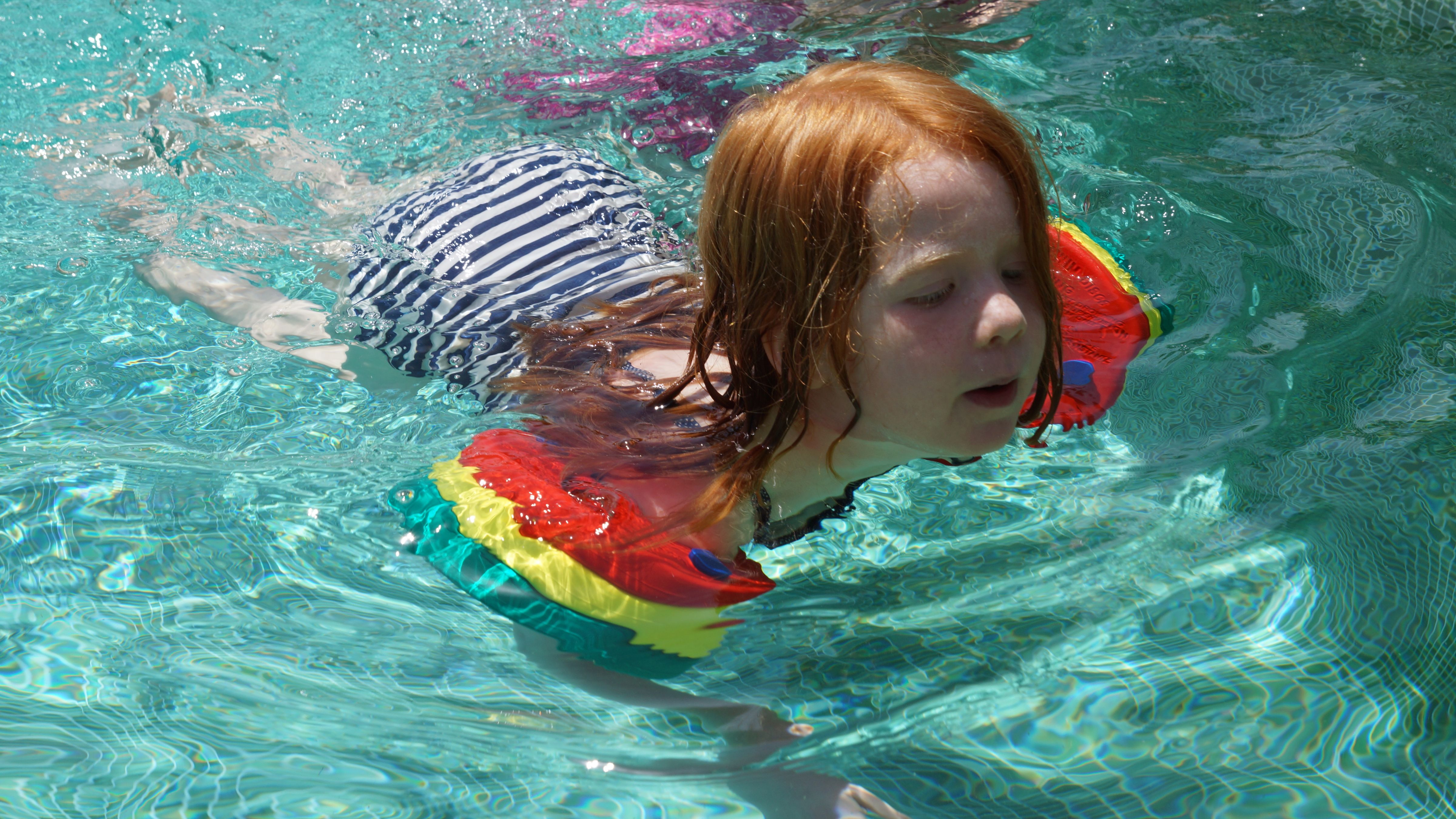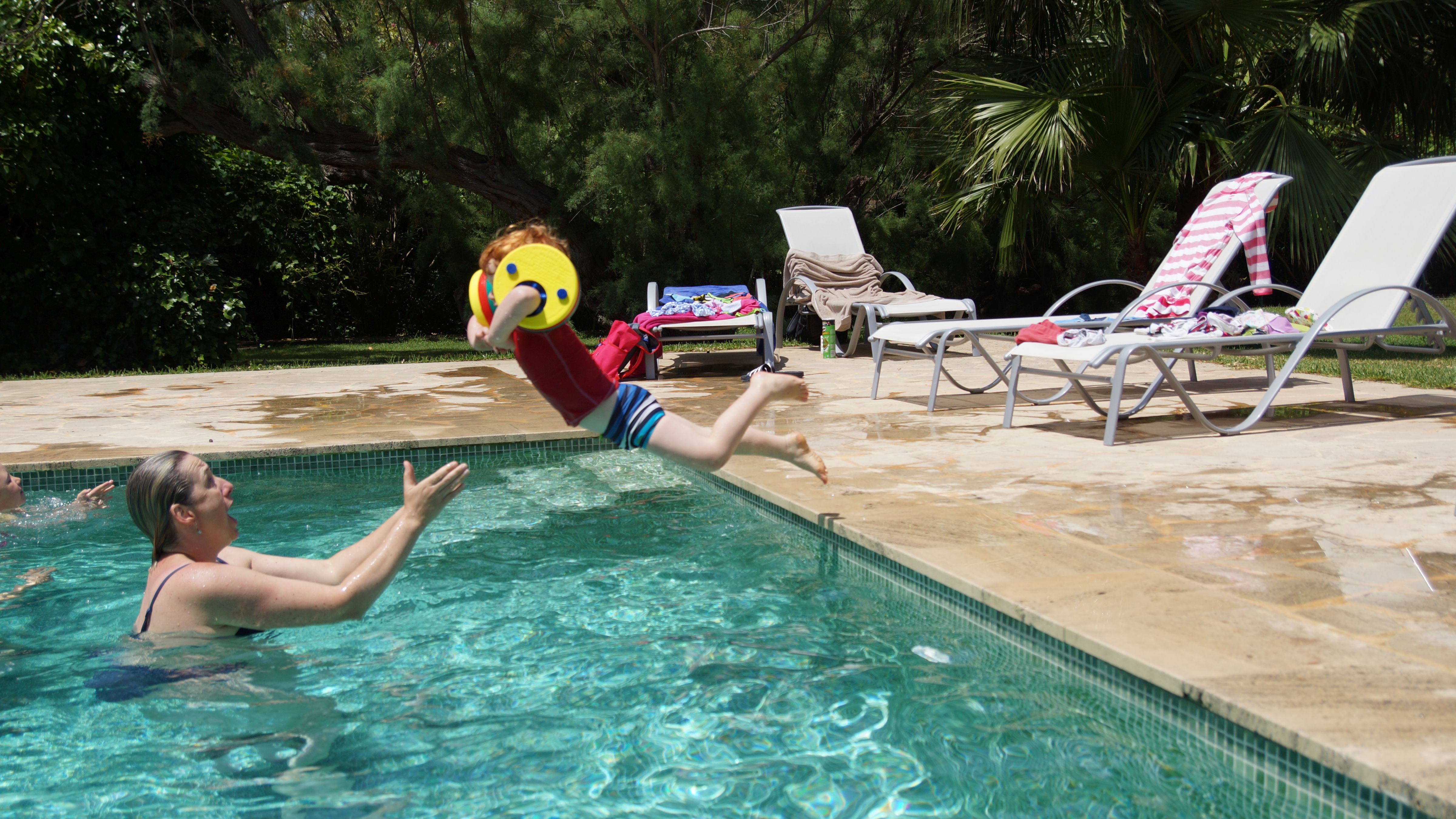Zum Glück hatten wir ja auch noch unseren Pool, der auch zum Badespaß einlud. Amelie schwimmt mittlerweile schon ganz alleine mit ihren Schwimmringen und auch Finn wurde immer mutiger. Beide Kinder hatten einen riesige Freude mit dem Sprung in den Pool und konnten damit gar nicht mehr aufhören.