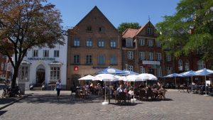 Nach dem Frühstück konnte ich mich dann auch etwas von der Müdigkeit erholen und Sandra ist weitergefahren. Um ca. 13 Uhr sind wir dann bereits in Flensburg an unserem Hotel angekommen. Da wir erst um 14 Uhr unser Zimmer beziehen konnten, sind wir noch kurz zu Fuß in das Nahe Zentrum auf den Südermarkt an der St. Nikolaikirche gegangen und haben ein leckeres Eis gegessen bzw. einen leckeren Milchshake getrunken.