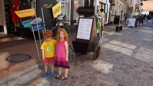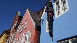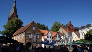 Die Innenstadt ist geprägt von den niedlich restaurierten alten Seemanns- bzw. Handelshäusern, in denen nun alle möglichen Geschäfte zu Hause sind. Die Einkaufsstraße mündet in die Norderstraße, die mit einem lustigen Ritual aufwartet. Über der Straße sind Seile von einer Hausseite auf die andere gespannt über die die Leute ihre alten Schuhe schmeißen. Das sieht ziemlich witzig aus.