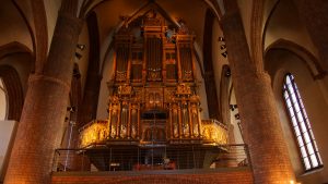 Nach dieser kleinen Stärkung konnten wir dann unser Hotelzimmer beziehen. Kurz darauf hat uns dann Anja, eine Volleyballfreundin von Sandra abgeholt, die nun schon seit 4 Jahren in Flensburg wohnt. Mit Anja hatten wir dann zusammen eine tolle Stadtführung mit der ersten Station St. Nikolaikirche. Die Kirche ist im Besitz einer beeindruckenden Orgel.