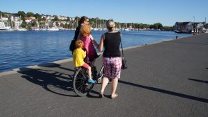 Danach sind wir zur letzten Station zur Hafenspitze gelaufen. Hier gab es einen Spielplatz, auf dem sich die Kinder trotz des langen Fußmarsches noch weiter ausgetobt haben. Hier stießen dann auch noch Anjas Sohn Karl und Mann Micha zu uns. An der Hafenspitze sind wir dann gemeinsam Essen gegangen. Es gab Pommes und einen sehr leckeren Edelfischteller, was sonst hier am Meer.