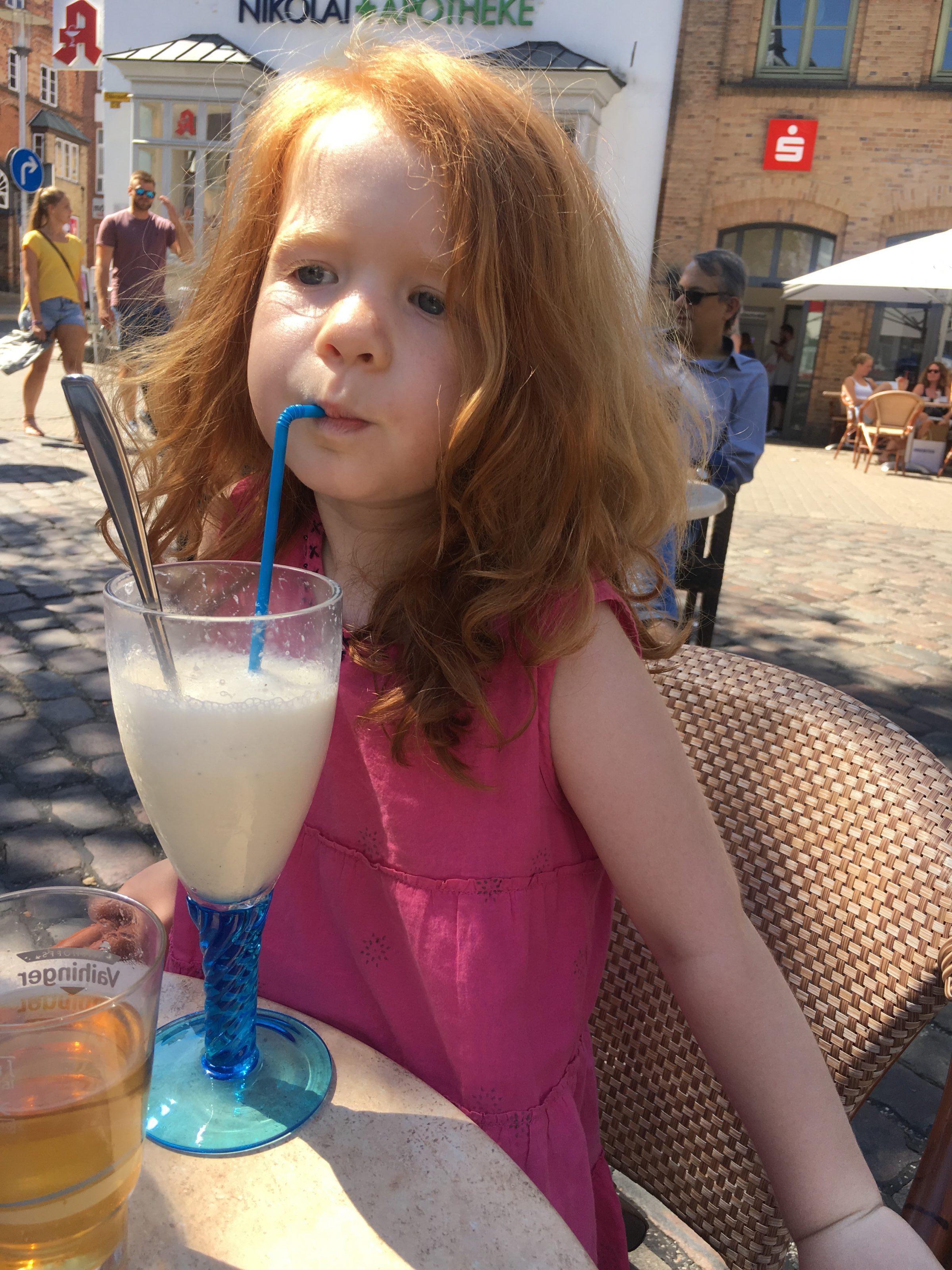 Nach dem Frühstück konnte ich mich dann auch etwas von der Müdigkeit erholen und Sandra ist weitergefahren. Um ca. 13 Uhr sind wir dann bereits in Flensburg an unserem Hotel angekommen. Da wir erst um 14 Uhr unser Zimmer beziehen konnten, sind wir noch kurz zu Fuß in das Nahe Zentrum auf den Südermarkt an der St. Nikolaikirche gegangen und haben ein leckeres Eis gegessen bzw. einen leckeren Milchshake getrunken.