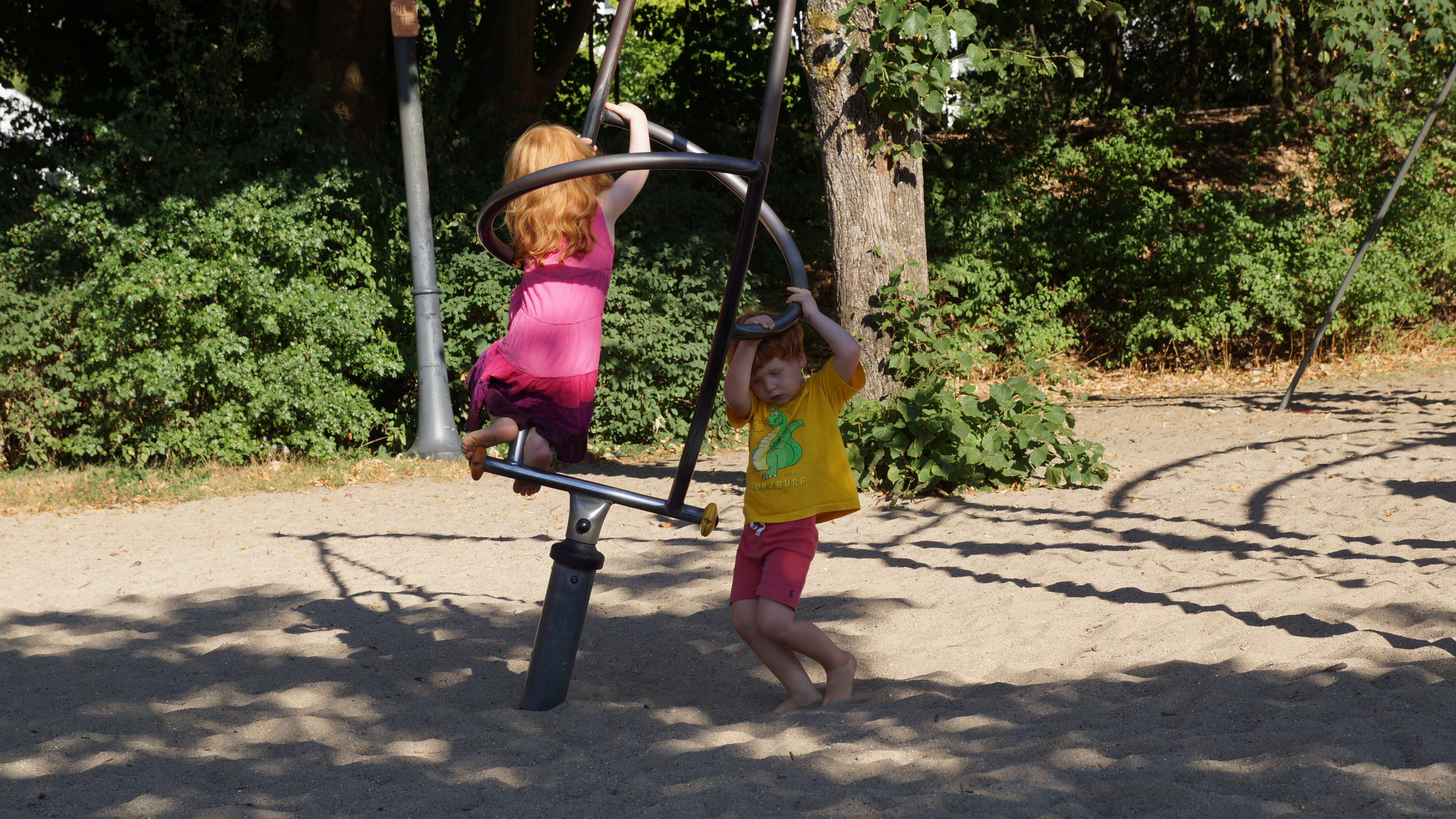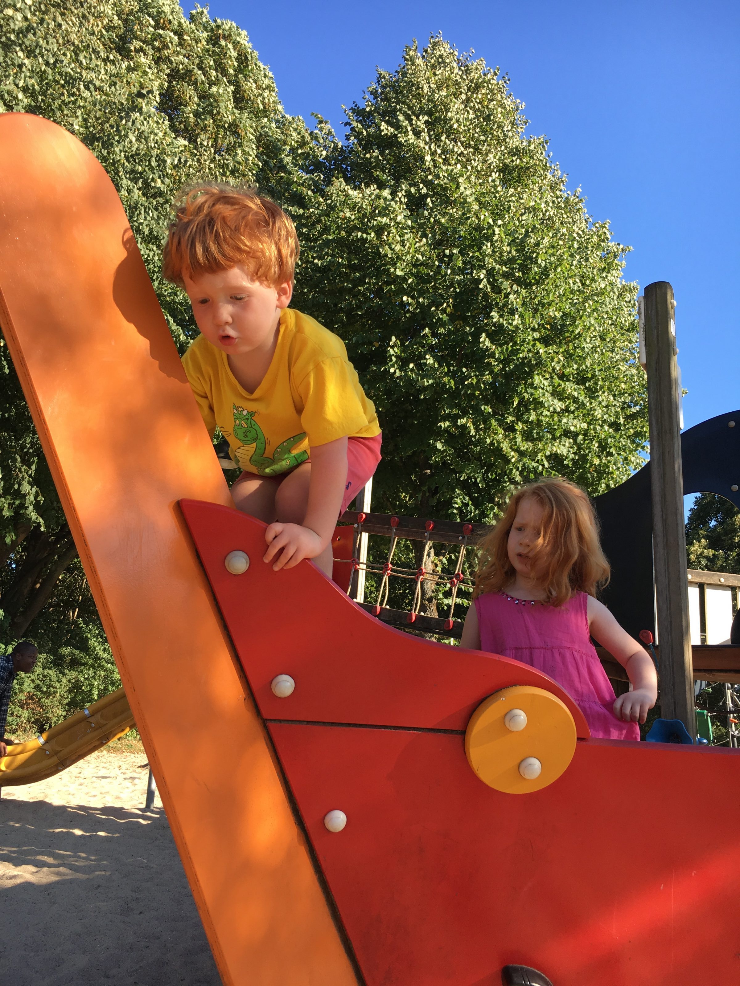 Danach sind wir zur letzten Station zur Hafenspitze gelaufen. Hier gab es einen Spielplatz, auf dem sich die Kinder trotz des langen Fußmarsches noch weiter ausgetobt haben. Hier stießen dann auch noch Anjas Sohn Karl und Mann Micha zu uns. An der Hafenspitze sind wir dann gemeinsam Essen gegangen. Es gab Pommes und einen sehr leckeren Edelfischteller, was sonst hier am Meer.