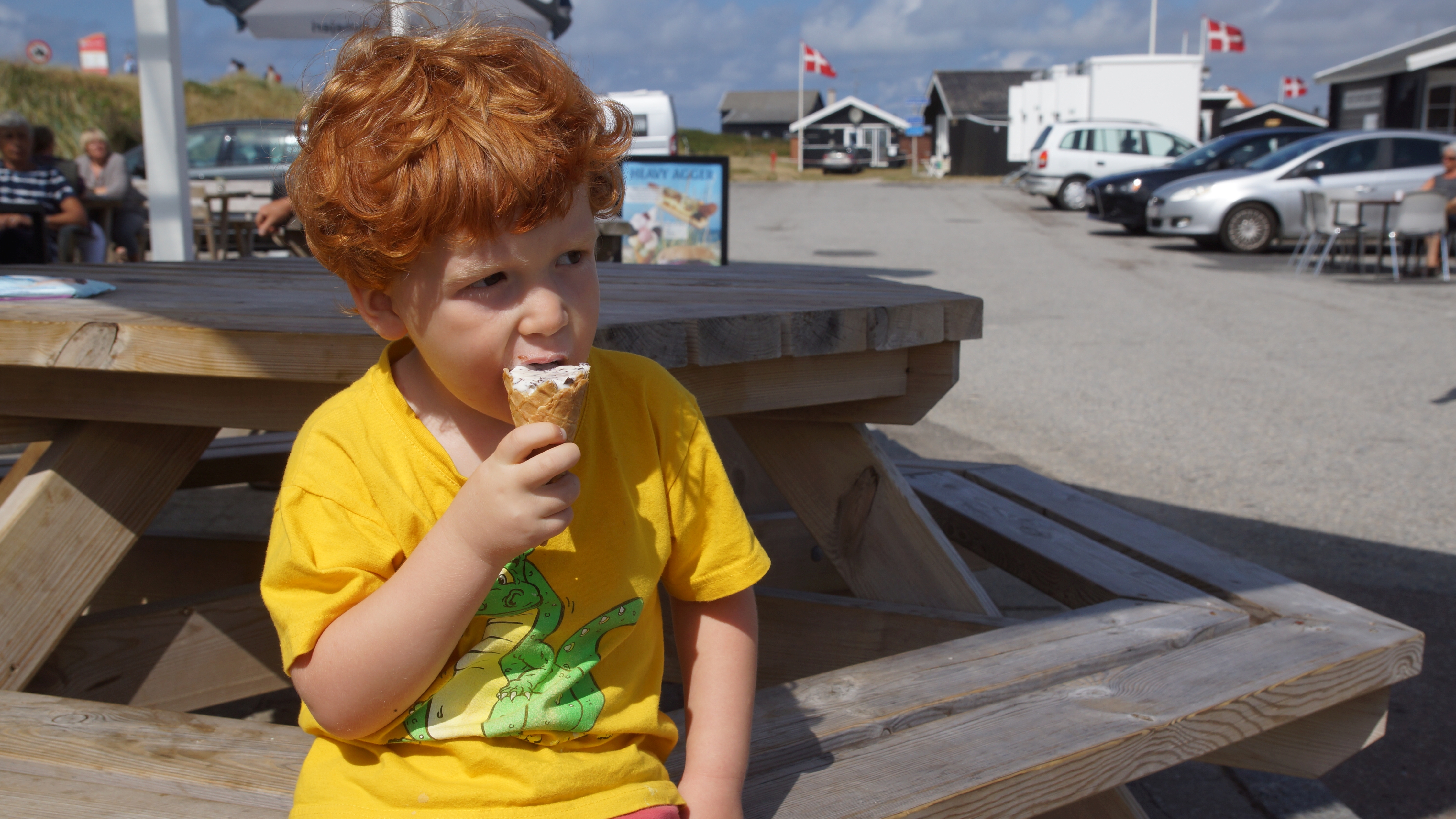 Zurück am Parkplatz haben wir noch ein Eis für umgerechnet 2,20 € pro Kugel gegönnt. Kirk, wo auch unser Ferienhaus steht, liegt direkt am Limfjord. Unser Ferienhaus liegt direkt an einem Strand, wo viele Kite- und Windsurfer ihrem Sport frönen. Um 16 Uhr konnten wir dann auch endlich in unser super Ferienhaus. Die Kinder haben sofort alles inspiziert und fanden alles tiptop.