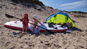 Heute sollte es wieder nach Nørre Vorupør, den niedlichen Ort mit der Strandfischerei, gehen. Und dieses Mal habe ich auch das Standup-Paddel-Board mitgenommen. Heute sollte es auch die Nordsee damit gehen. Es dauert immer ein ganz schöne Zeit bis wir uns alle nach dem Frühstück sortiert, alle Strandsachen gepackt und alle Kinder und uns eingecremt haben. Aber dann ging es los.