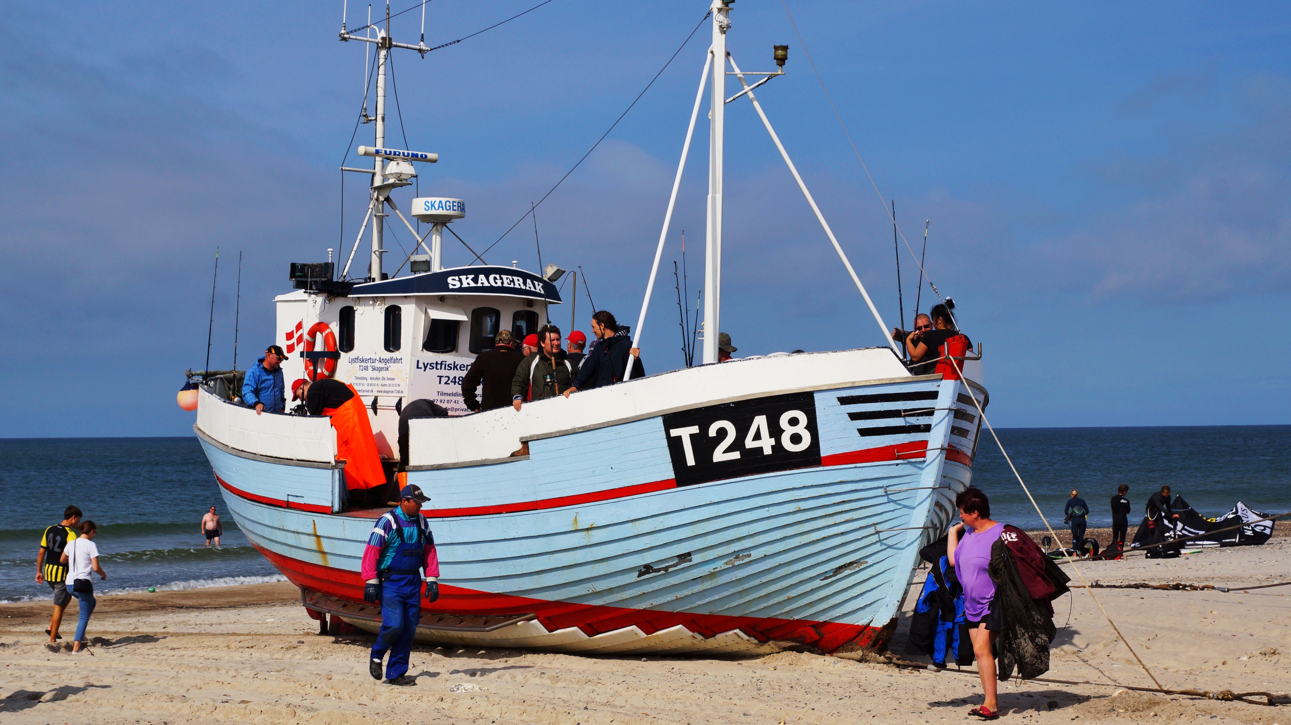 Um die Ecke wollte ich bei dem schönen Wetter noch ein, zwei Fotos von den Fischerbooten machen. Da keiner mitkommen wollte, habe nur ich zugeschaut, wie eins der Fischerboote gerade auf den Strand gezogen wurde.