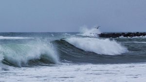 Das letzte Mal, als ich mit Finn alleine am Strand von Agger war, hatten wir aus der Ferne einen alten Bunker gesehen. Und zu dem wollten wir heute mal hinfahren und uns die bei dem Wind aufgewühlte Nordsee angucken. Und der Wind war auch tatsächlich direkt am Meer noch eine Spur stärker und die Wellen waren wieder atemberaubend. Viele Menschen waren nicht am Strand, da es einfach viel zu windig war. Umso erstaunlicher war es, dass wir bei diesem Wetter auf offener See einen Windsurfer in den hohen Wellen gesehen haben. Aber der war leider zu weit weg für ein Foto.