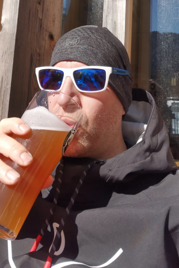 Nach der Mittagspause im Restaurant in der Talstation direkt gegenüber vom Übungshang, ging es für die Kinder noch mal zwei Stunden in die Skischule, wo es üben, üben, üben hieß: „Großmachen“, „Beine auseinander“, usw. Und während Amelie und Finn so fleißig auf der Piste übten habe ich mir ein Bierchen in der Sonne gegönnt.
