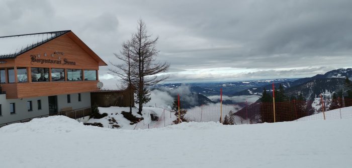 Kurz darauf kam auch Sandra mit der Gondel oben an, nachdem Finn nochmal unten am Übungshang beginnen musste. Wir hofften so sehr, dass es auch für seine Gruppe heute nach dem Mittag nach oben ins Skigebiet ging. Den Vormittag konnten wir ja noch zu Zweit genießen, denn Nachmittags hatte Sandra ja einen Einzelskikurs gebucht.