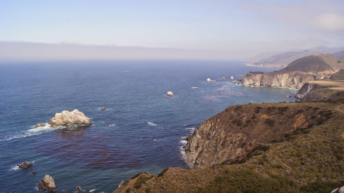 Heute stand nur eine kleine Fahrstrecke auf dem Programm hin zum Pfeiffer Big Sur State Park. Die Strecke ging wieder Richtung Süden auf dem Highway No. 1. Immer wieder konnten wir beeindruckende Blicke auf die Küste und die kleinen sandigen Buchten genießen.