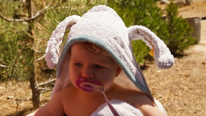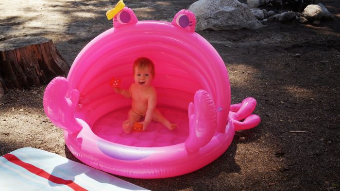 Zurück an unserer Camping Site, haben wir die Decke rausgeholt und Amelie konnte etwas im Freien spielen bevor wir den neuen aufblasbaren Swimmingpool eingeweiht haben. Amelie fand ihn einfach großartig.