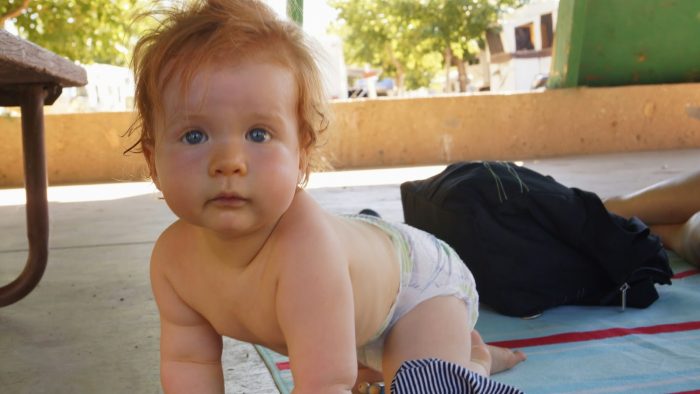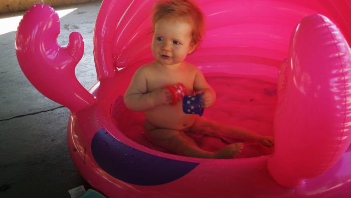 Heute haben wir dann den Nachmittag auf dem Campingplatz genossen. Amelie hat wieder in ihrem rosa Krebs geplanscht und ist auf der Decke rumgekrabbelt (nicht immer blieb sie dabei auf der Decke).