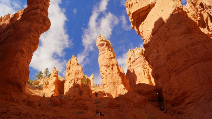 Nach dem Mittag bin ich dann alleine den Navajo Loop Trail hinunter zu den Füßen der Türme und wieder hoch zur Abbruchkante gelaufen. Leider war das für Sandra im 4. Monat und Amelie zu anstrengend. Der Trail war super. Von unten hat man noch mal eine ganz andere Sicht und teilweise bin ich in kleinen engen Schluchten gelaufen, die vielleicht gerade mal einen Meter breit waren.