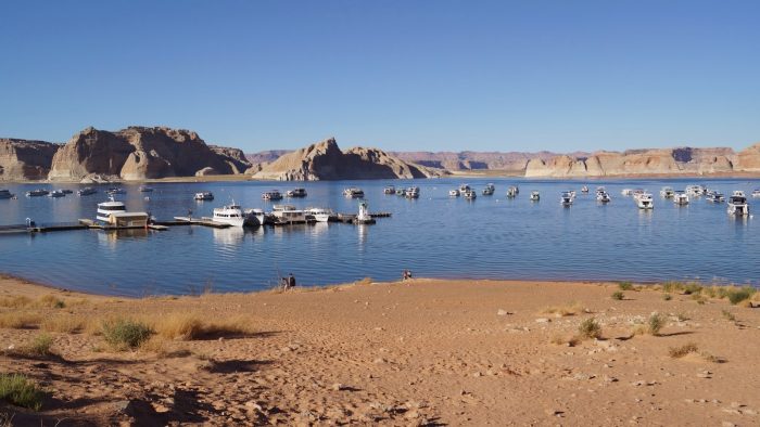 Nach einer Dusche und einer noch dringenderen Rasur, sind wir dann ab zum Lake Powell. Hier in Page wird der Grand Canyon gestaut und der riesengroße Stausee ist der Lake Powell. Er hat eine insgesamt ca. 3.000 km Uferlänge!