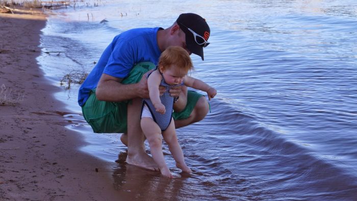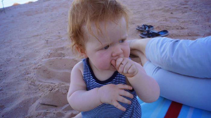 Hier wurde ein riesengroßer Canyon überflutet. Der See wirkt total unwirklich: Da erscheint ein großer dunkelblauer Fleck mitten in der Wüste und den trockenen Steinen. Wir haben uns dann gemütlich an den See gehockt und mit Amelie etwas im Sand gespielt.