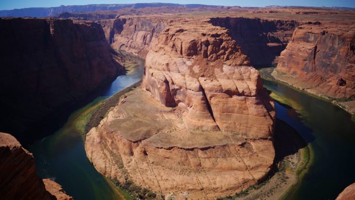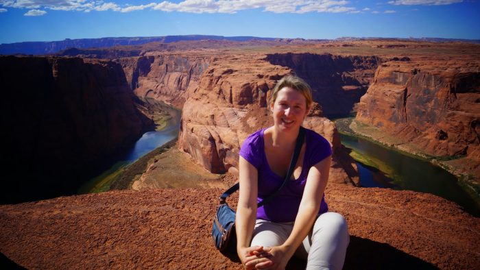 Überwältigt von diesen tollen Eindrücken sind wir dann weiter zum Horseshoe Bend vom Colorado River. Hier macht der Colorado eine Kurve, die aussieht wie ein Hufeisen. Von der ungesicherten Abbruchkante hat man einen tollen Blick auf den Horseshoe oder das Hufeisen.