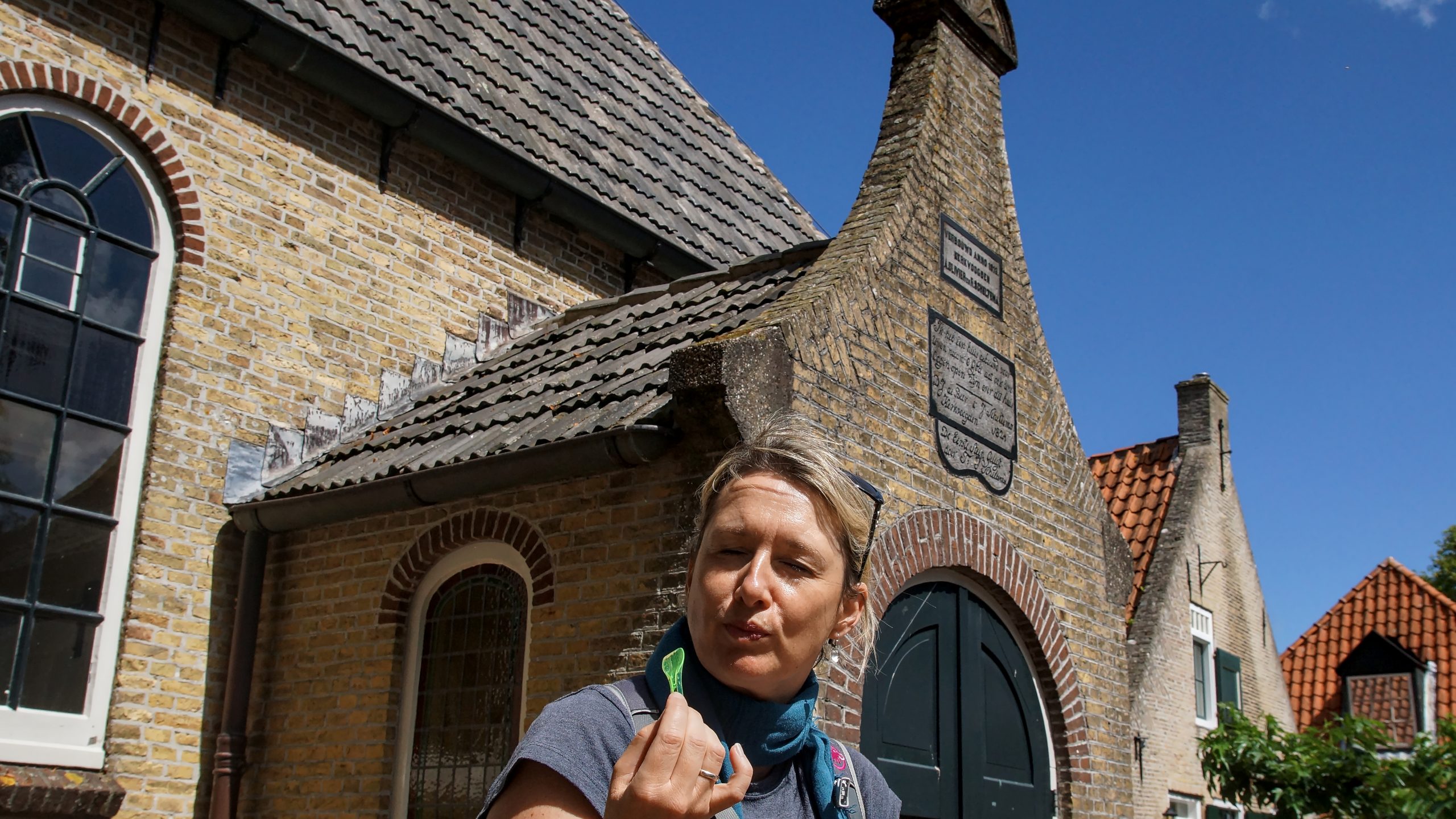 Bevor sich unsere Wege heute trennten sind wir alle zusammen noch mit den Fahrrädern in den Ort Nes gefahren und haben uns dort den Ortskern mit den wirklich niedlichen alten Seemanshäusern angeschaut. An den Zackenreihen an den Häusern konnte man früher erkennen, ob der Eigentümer Kapitän (zwei Zackenreihen) oder Steuermann (eine Zackenreihe) war.