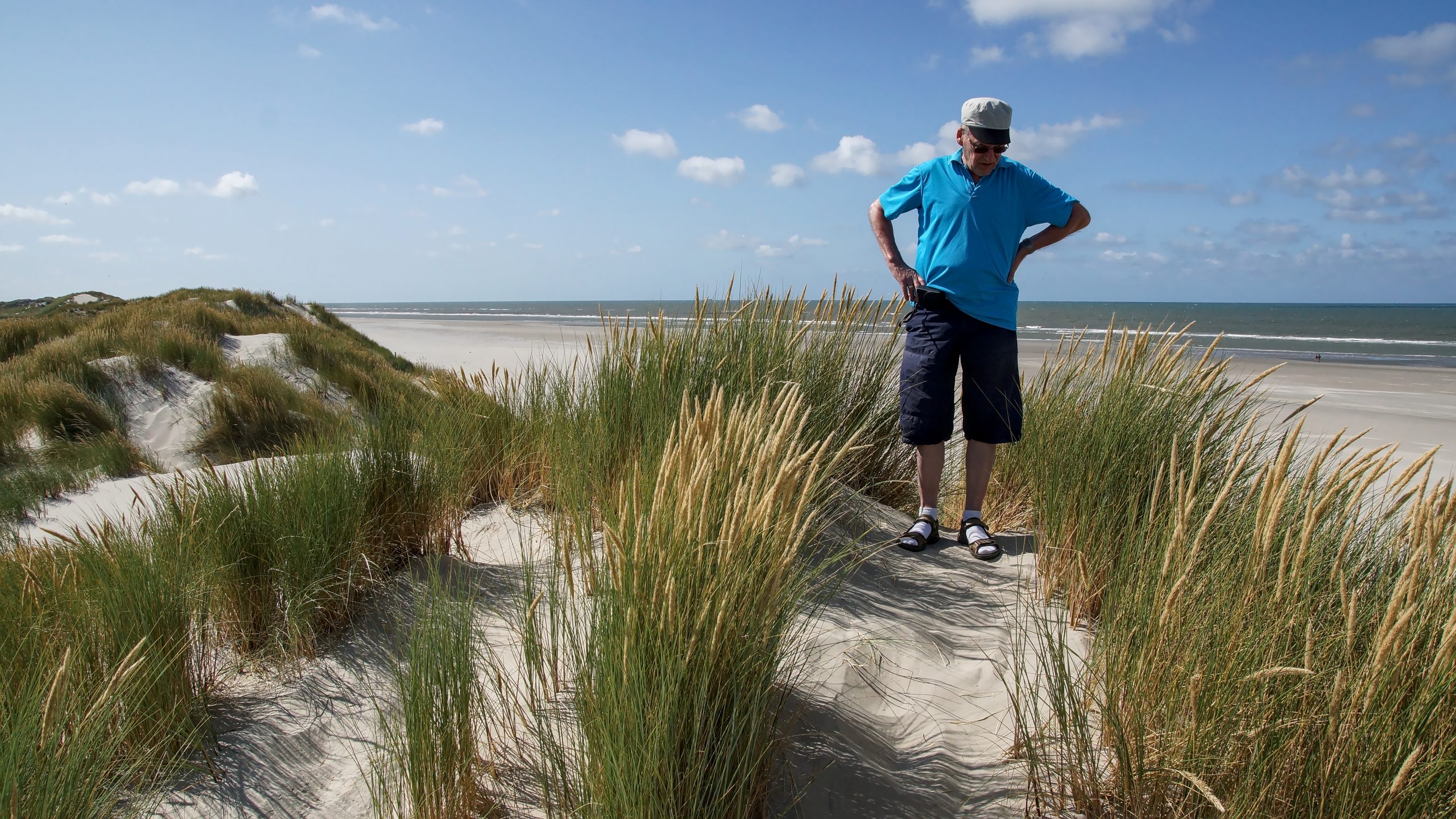 Es gab wieder ein vorzügliches Frühstück und dabei haben wir die Pläne für den heutigen Tag gemacht. Amelie, Finn und Lea wollten heute mit Sandra, Rike und Oma zum Ponyreiten gehen. Wir Männer beschlossen die Zeit zu nutzen, um mit den Fahrrädern zur östlichen Seite der Insel in das Naturschutzgebiet Het Oerd zu fahren. Das Wetter war überraschend besser als angekündigt. Der Wind hatte zwar deutlich zugenommen aber die Sonne schaffte sich immer mehr Platz.