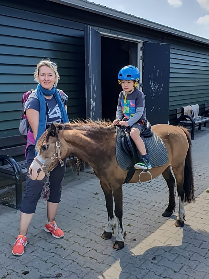 Zuhause erwarteten uns dann auch schon die Kinder und kamen aus dem Erzählen vom Ponyreiten gar nicht mehr raus. Alle hatten ein Pony und riesigen Spaß auch wenn Lea noch am Anfang etwas großen Respekt hatte. Sandra hat sich bei dem Reiterhof gleich für Dienstag bei einem Gruppenausritt an den Strand angemeldet. Amelie und Finn überlegen noch, ob sie dann in der Zeit, in der Sandra ausreitet, einen Kinderreitkurs belegen.