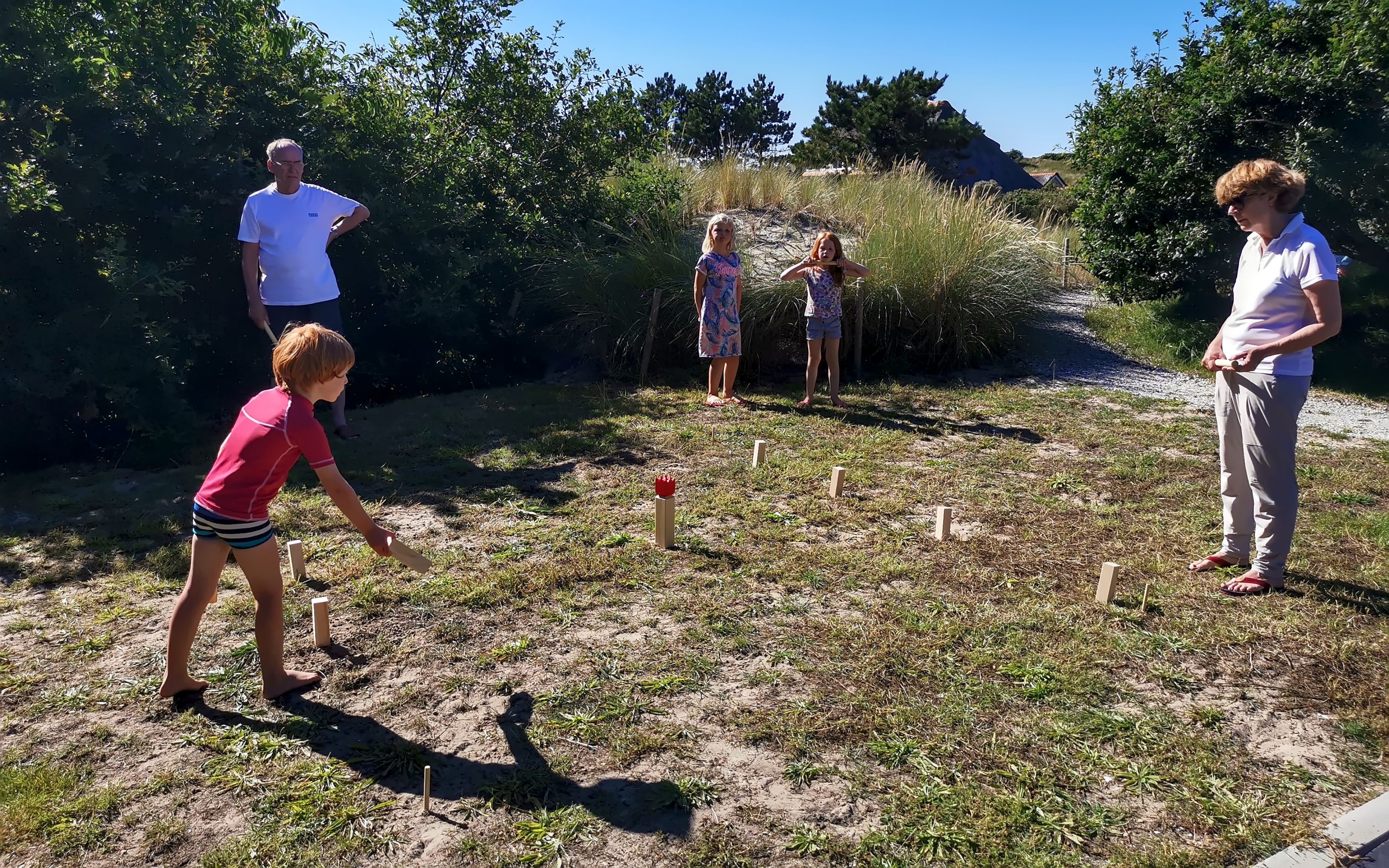 Sandra ist bereits früher zusammen mit Rike vom Strand aufgebrochen, um noch in Nes shoppen zu gehen. Der Rest hat noch weiter am Strand gechillt. Zurück im Ferienhaus haben Oma, Opa und die Kinder mit mir zusammen das Wikinger-Schach gespielt. Alle haben toll geworfen und getroffen, so dass wir alle Spaß hatten.