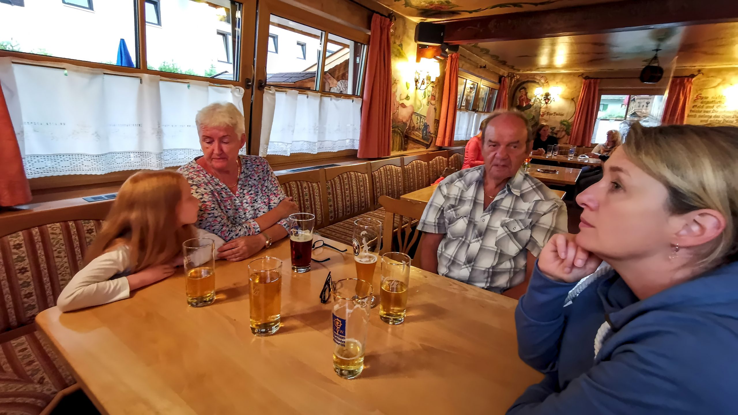 Zum Abendessen haben wir uns mit Oma und Opa in der Steirer Stubn zum Essen getroffen. Zurück in unserer Ferienwohnung, haben wir die Kinder ins Bett gebracht. Nachdem wir dann unsere geführte Klettersteigtour auf die Alpspitze für Dienstag im Internet gebucht hatten, haben Sandra und ich den Abend beim Kartenspiel „Kaffee International“ gemütlich ausklingen lassen.