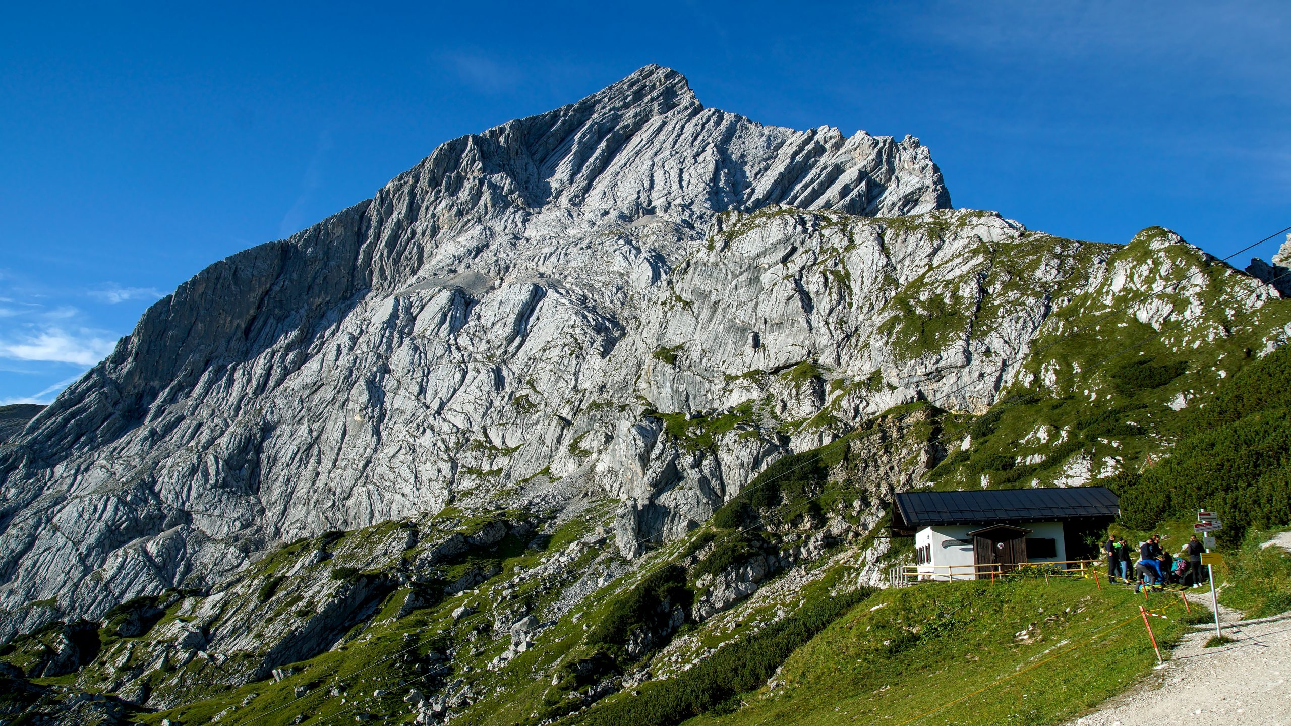 Der Wecker klingelte Sandra und mich heute bereits um 6:15 Uhr aus dem Bett. Heute erwartete uns die geführte Klettersteigtour auf die Alpspitze, dem Wahrzeichen von Garmisch-Partenkirchen. Die Kinder wollten unbedingt mit uns mit aufstehen und um 6:50 Uhr waren Oma und Opa da, um mit den Kindern zu frühstücken und den Tag zu verbringen. Um kurz nach 7 Uhr saßen wir dann im Auto auf dem Weg unserem Treffpunkt an der Talstation der Alpspitzbahn, wo wir um 7:45 Uhr unsere Verabredung mit unseren Bergführerinnen (Moni und Johanna) und der insgesamt 9 köpfigen Gruppe hatten. Nachdem alle ihre Tickets gekauft hatten, ging es mit der ersten Gondel hinauf zur Bergstation der Alpspitzbahn.