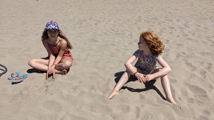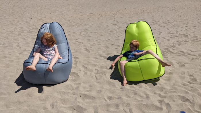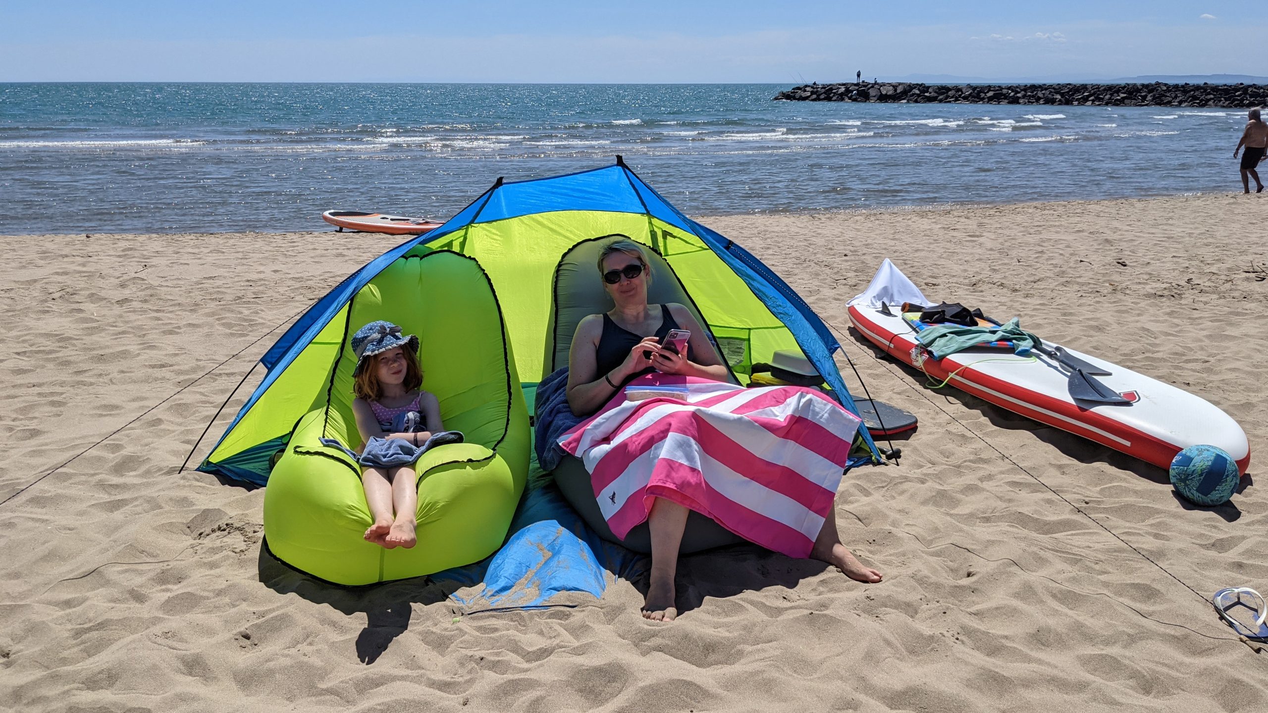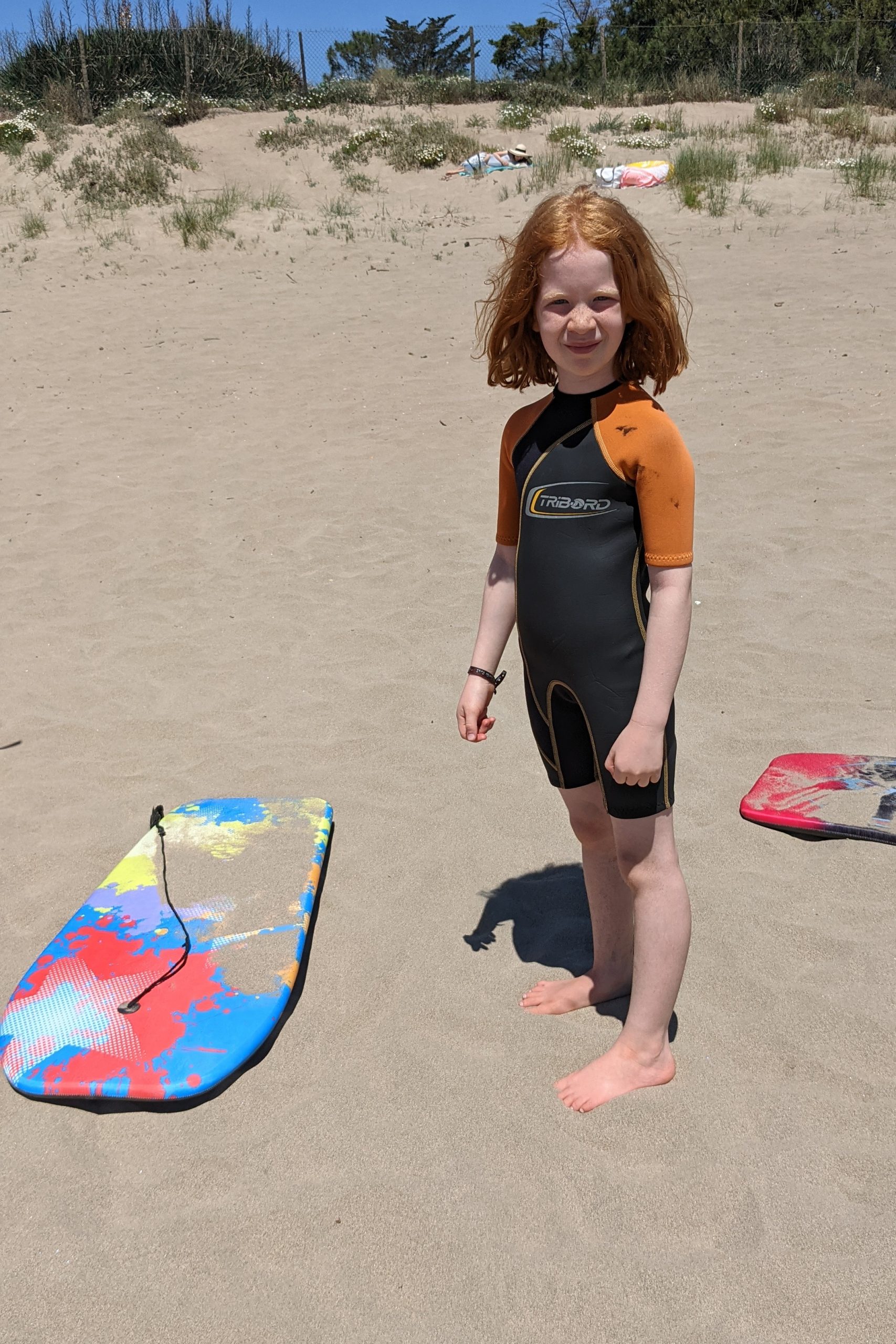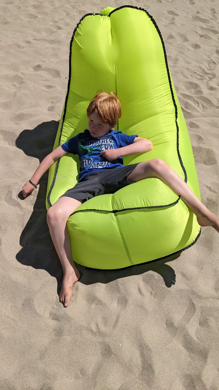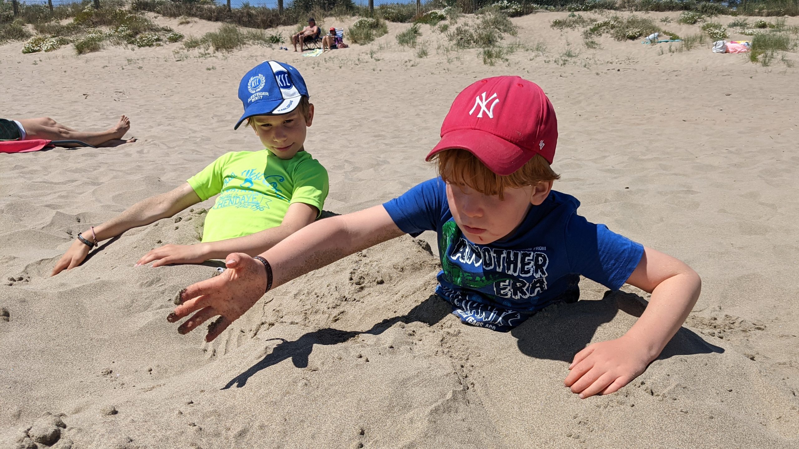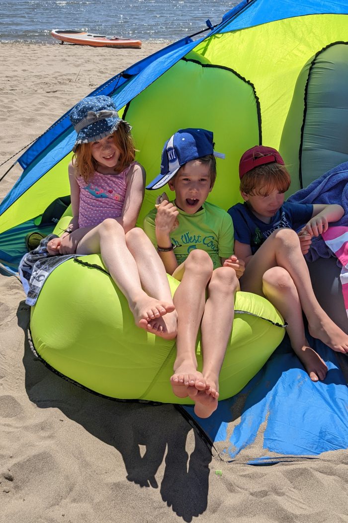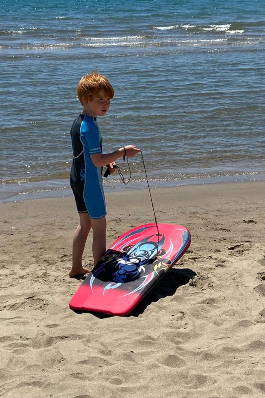 Wir hatten einen tollen Strandtag. Wir haben Fußball gespielt, uns im Sand eingebuddelt und sind mit den Kindern mit dem SUP und ihren neuen Bodyboards aufs Meer gepaddelt.