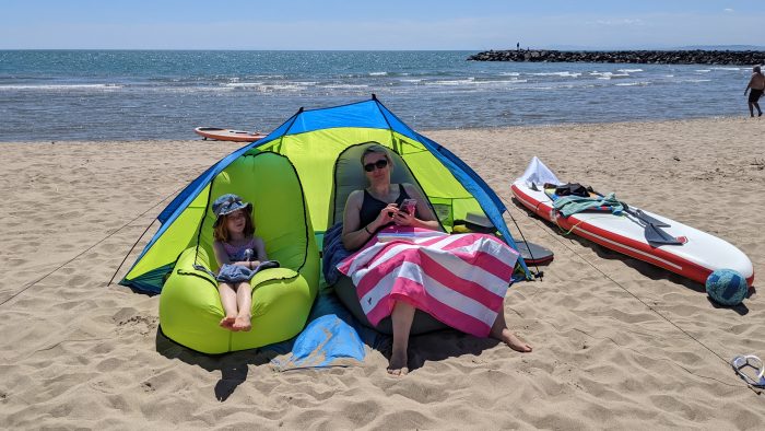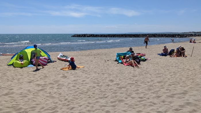 Danach ging es dann mit allem möglichen Strandspielzeug, Standup-Paddel (SUP) und Badesachen zum Strand direkt vor unserem Campingplatz.